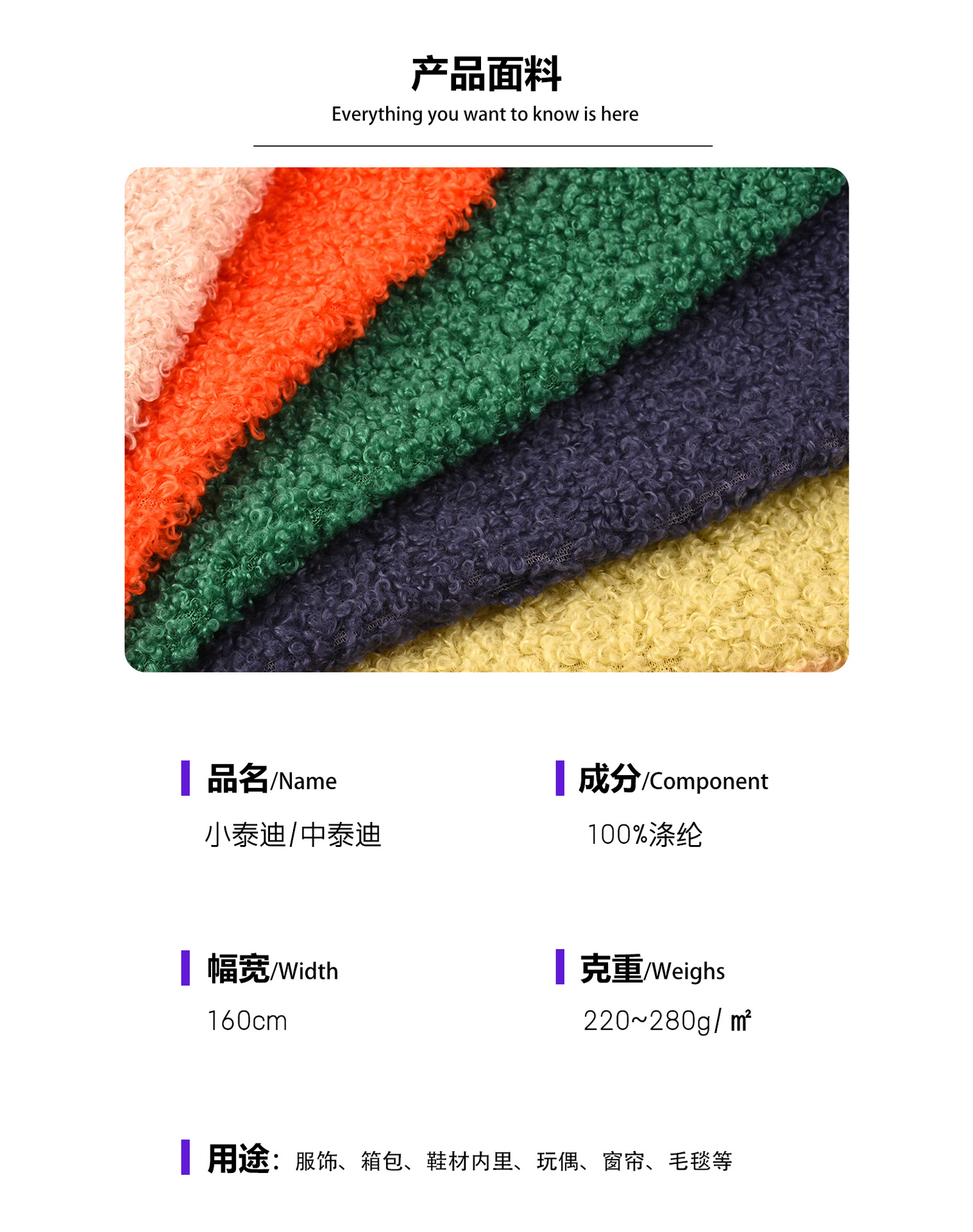 泰迪粒绒面料涤纶毛绒玩具绒布手工diy箱包服装宠物用品