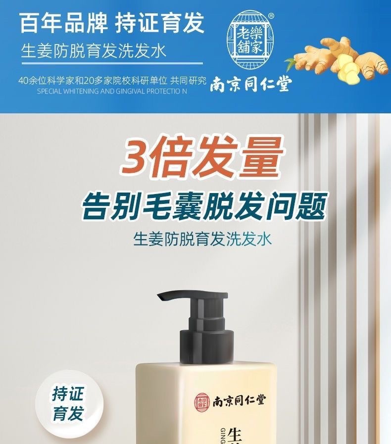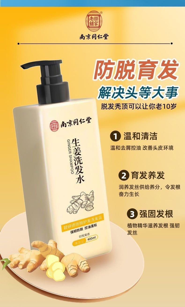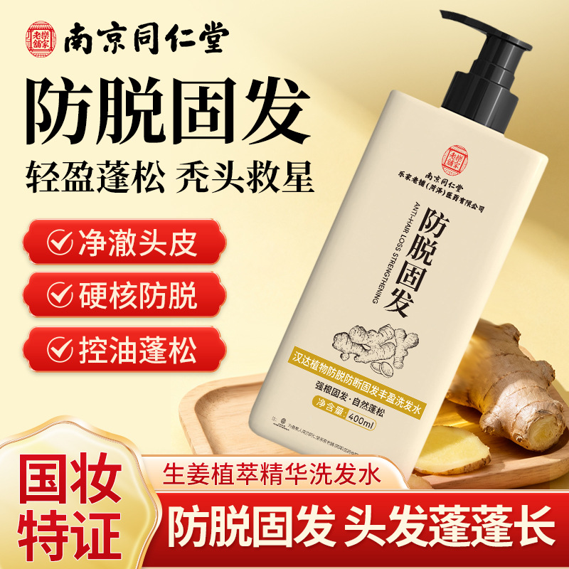南京同仁堂汉达植物防脱防断固发丰盈洗发水生姜精华育发液洗发露