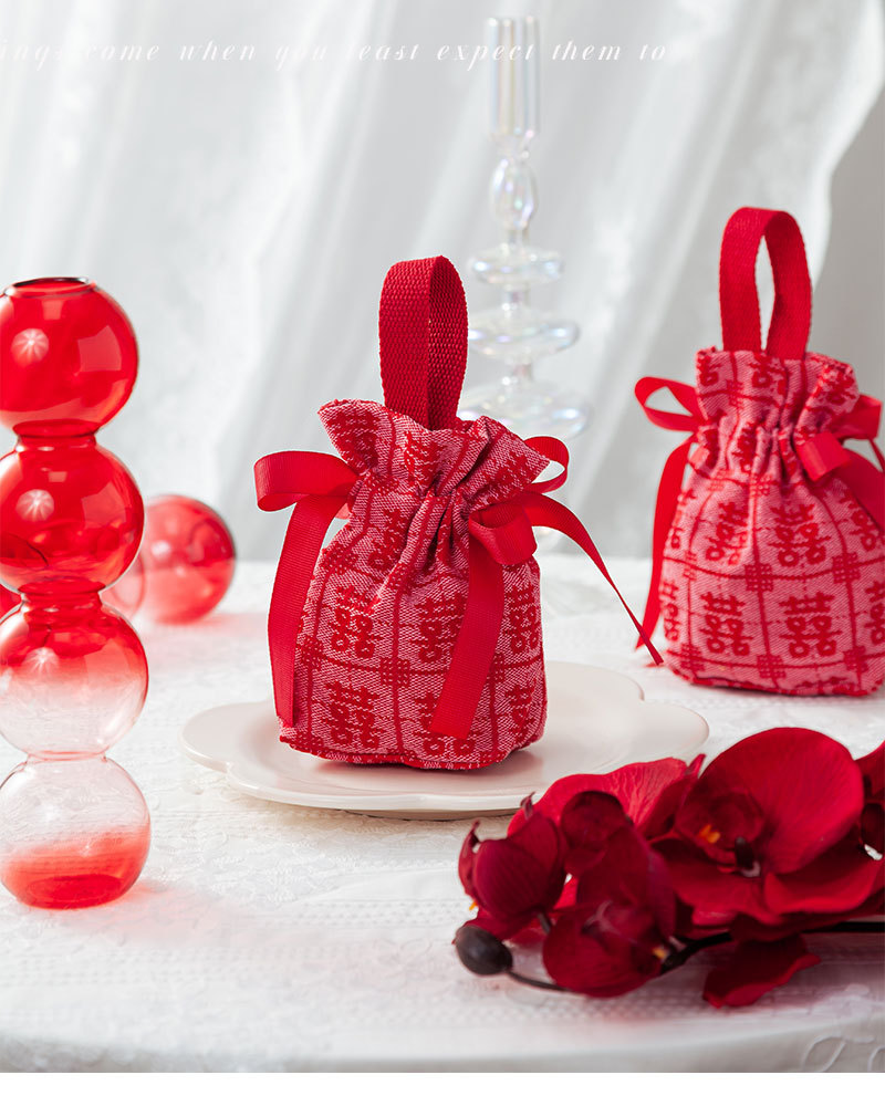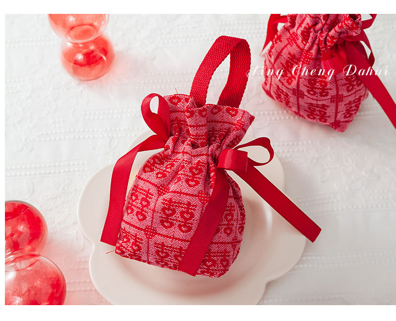 創意新作喜糖袋結婚式お土産袋折りたたみなし喜糖袋手提げ結婚ベルベット喜糖袋