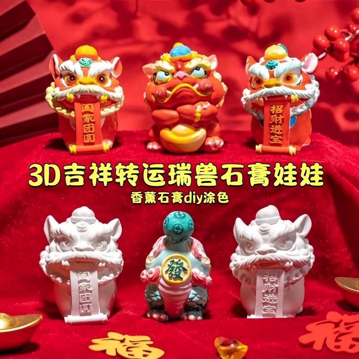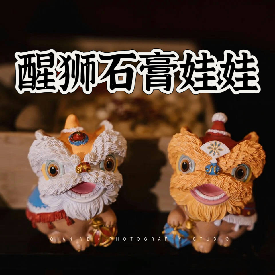 新年国潮覚醒ライオン立体石膏人形舞獅子白胚diy落書き彩色児童手作りプレゼント