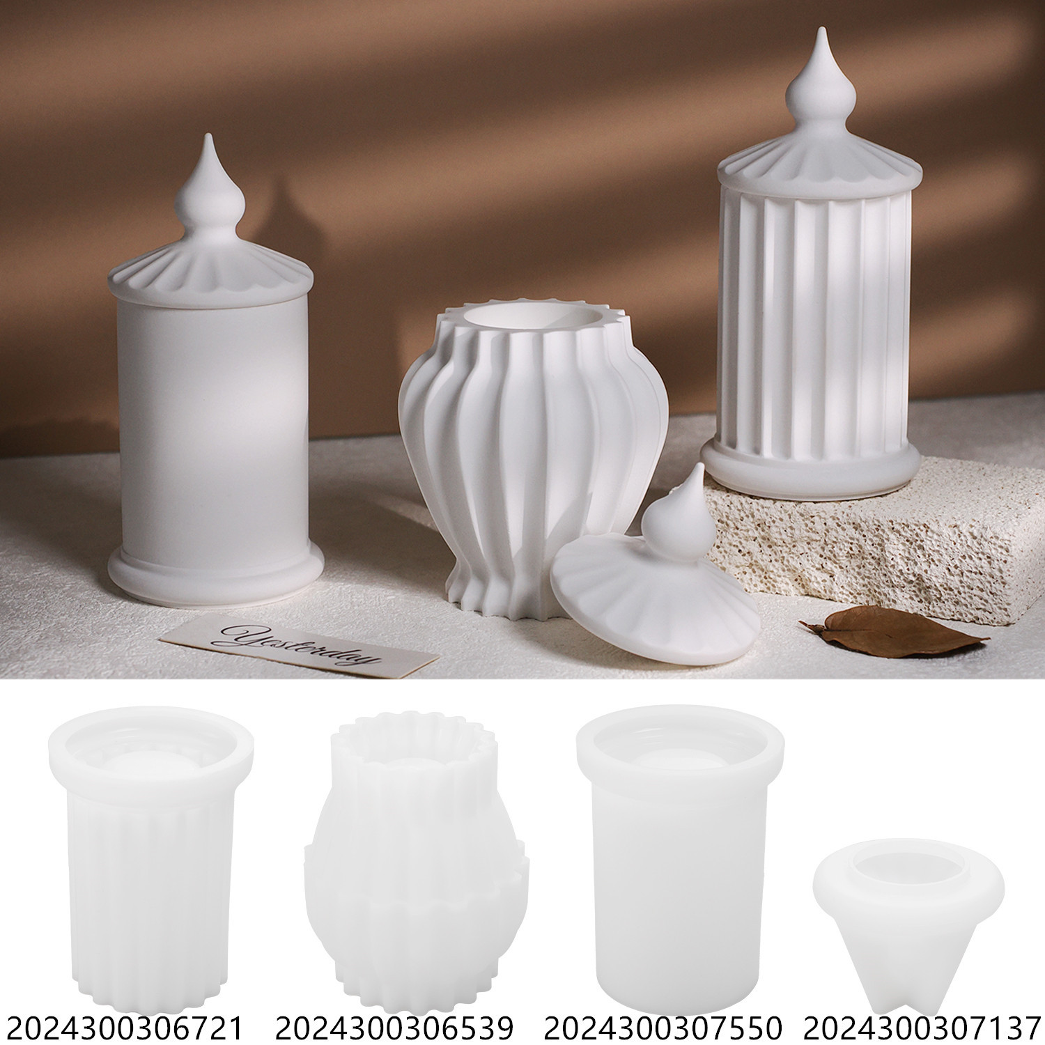 Diy石膏セメント香薫蓋付きキャンドルカップローマ柱ストライプカップ石膏鏡面シリコン金型置物