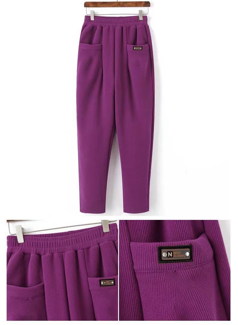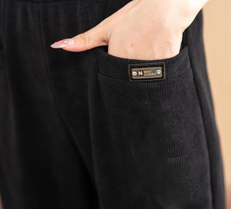 春と秋のベルベット肥厚シェニールハーレムパンツレディースルーズ大きいサイズRラベルカジュアルパンツストレートパンツポケットクロスボーダー