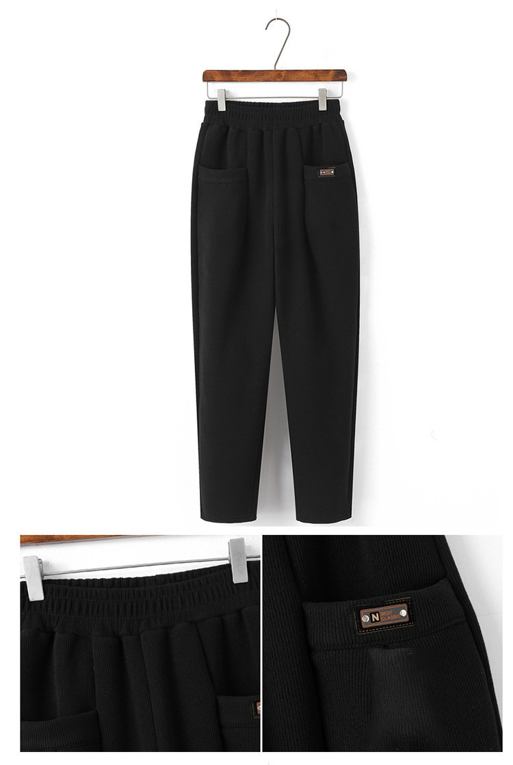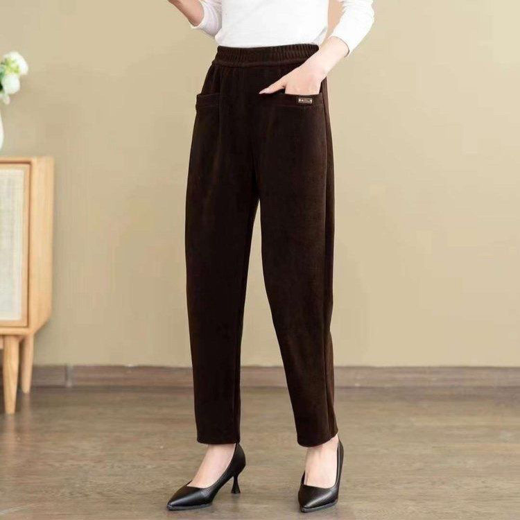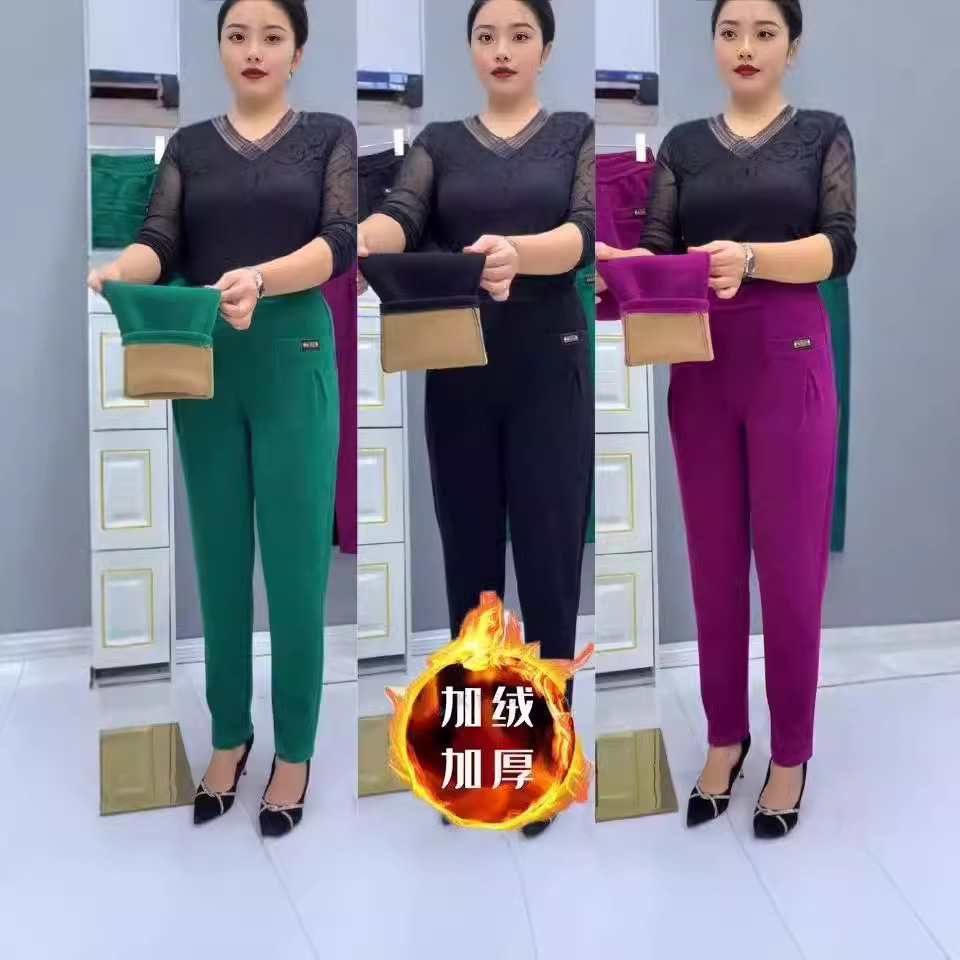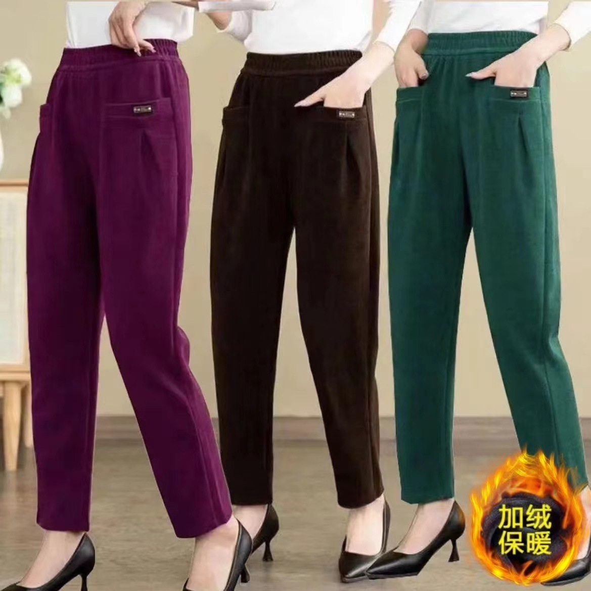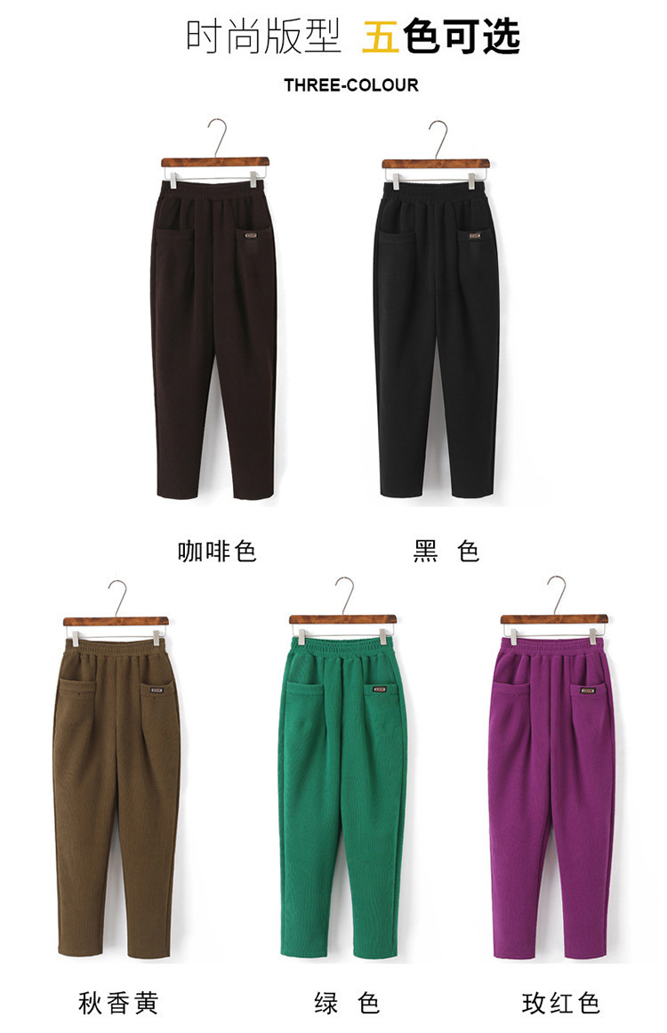 秋冬加绒加厚哈伦裤女大码宽松松紧腰休闲长款妈妈装纯色小脚裤子