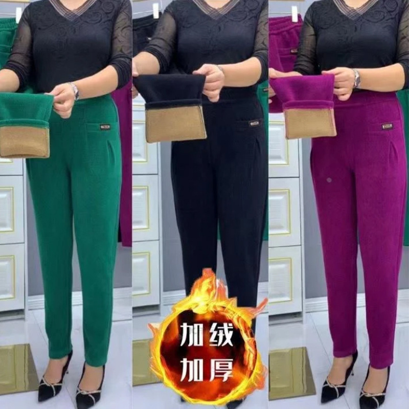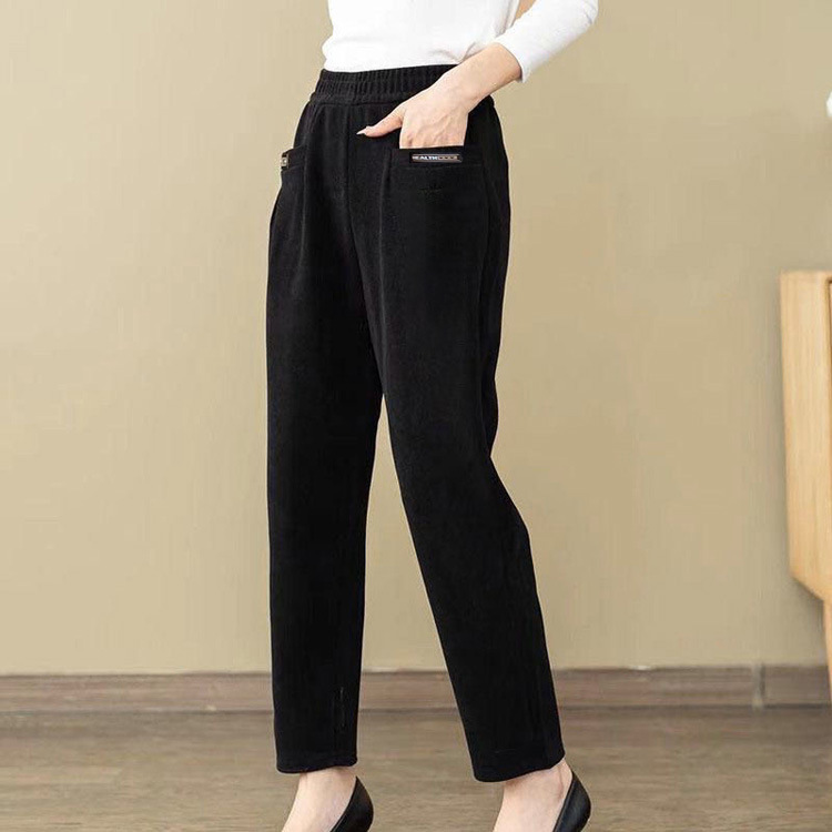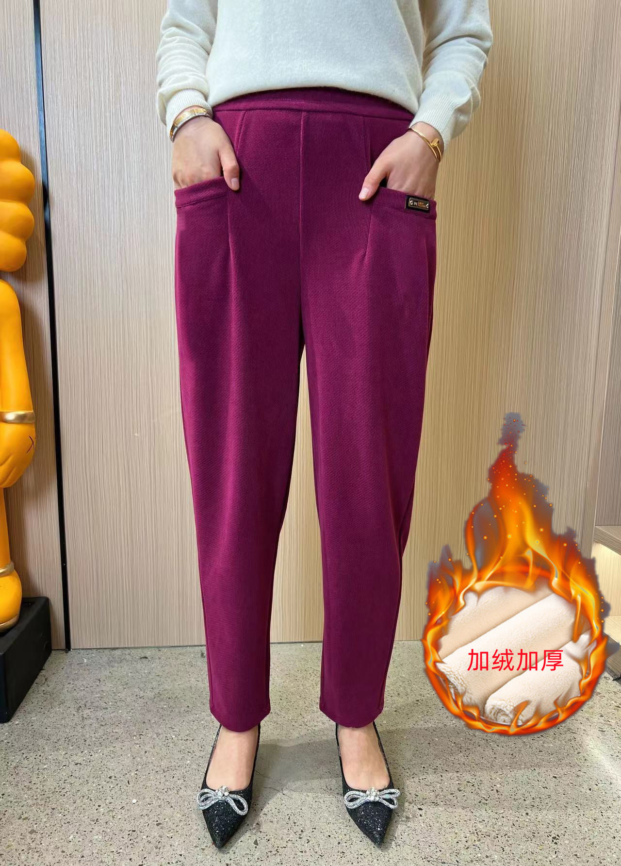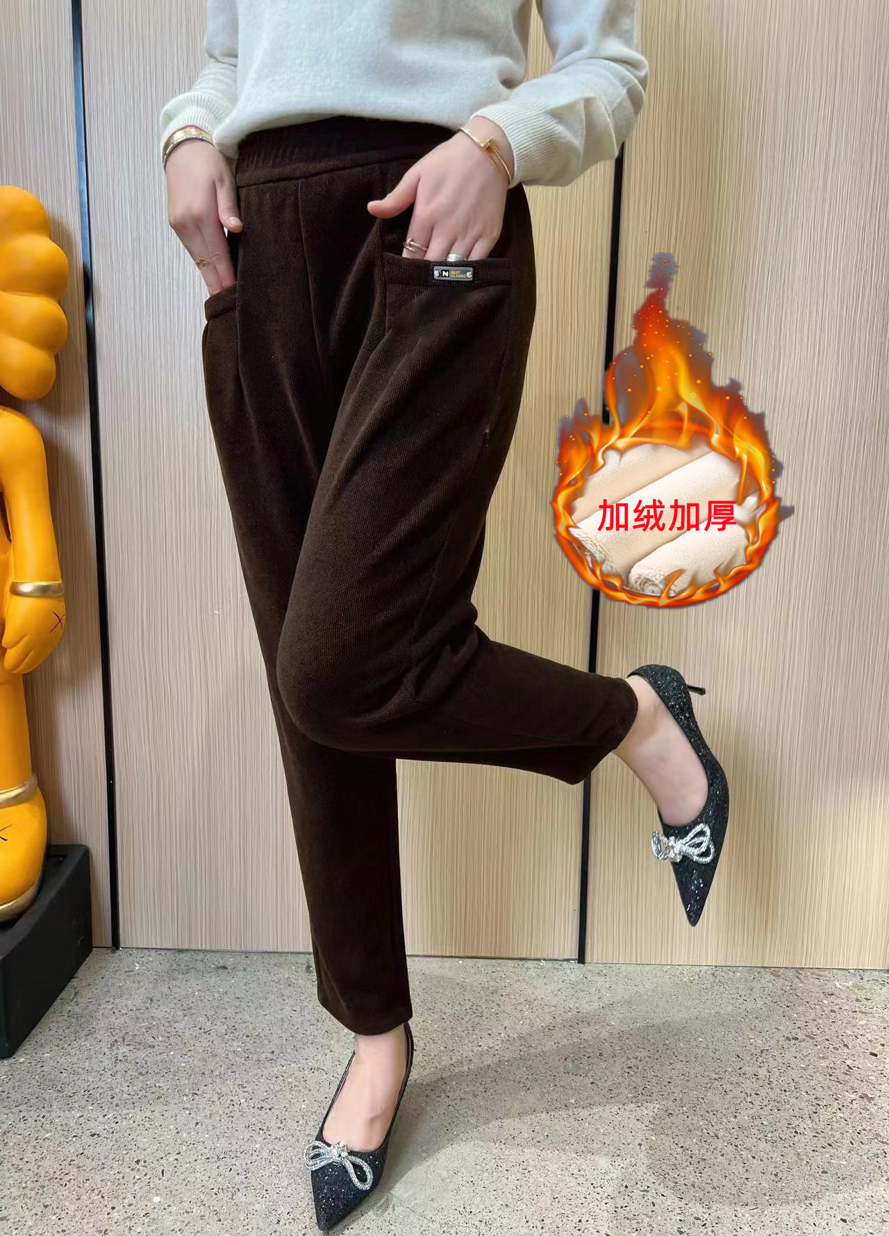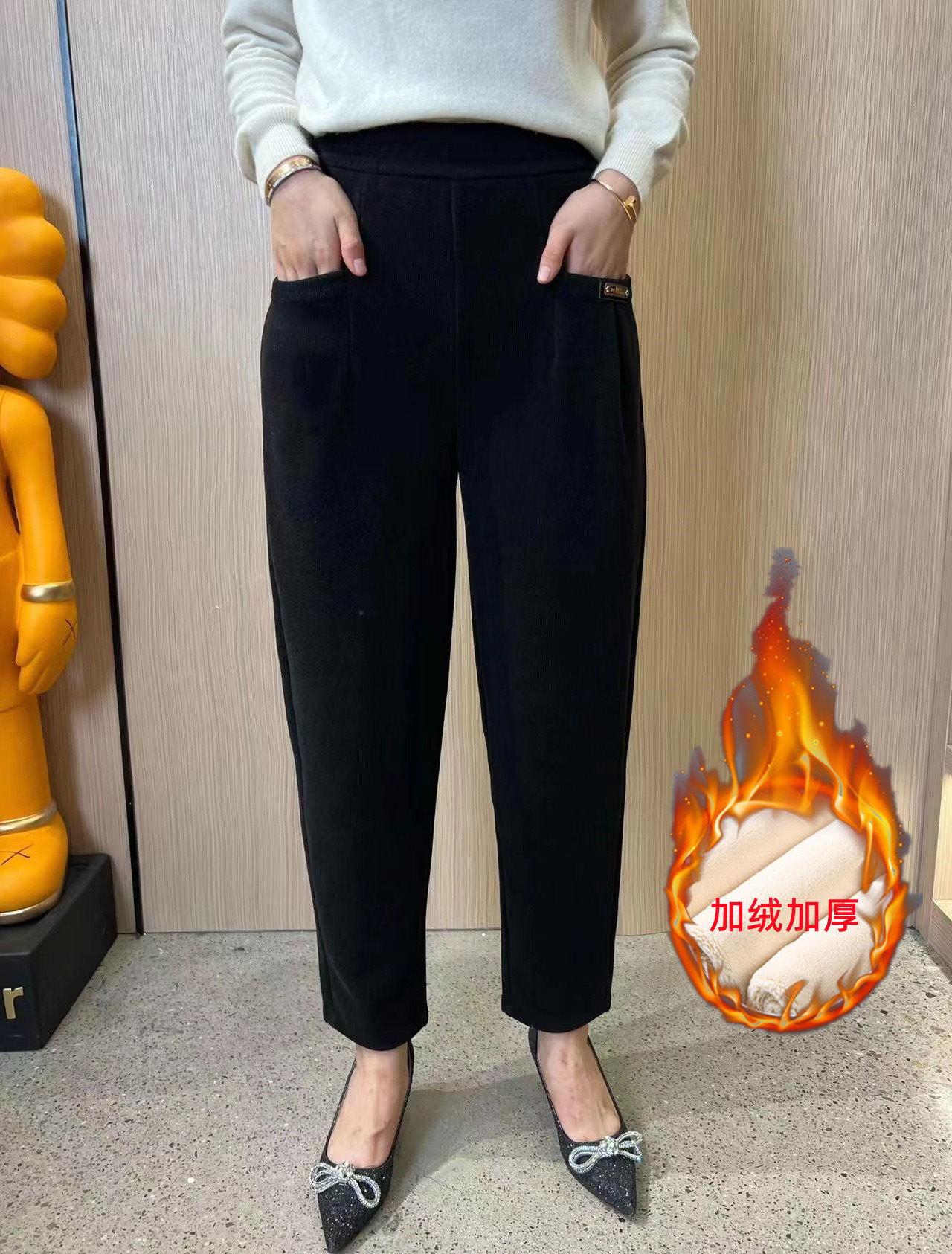 秋冬加绒加厚哈伦裤女大码宽松松紧腰休闲长款妈妈装纯色小脚裤子