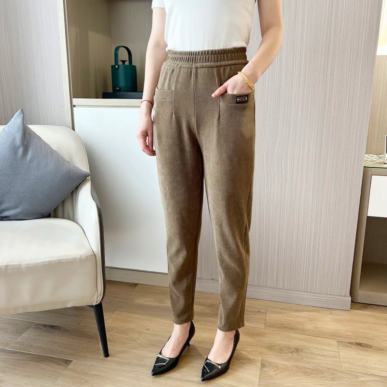 薄手の秋冬の新型のベルベットのハーレムのズボンの女性は腰を緩めてゆったりしています。