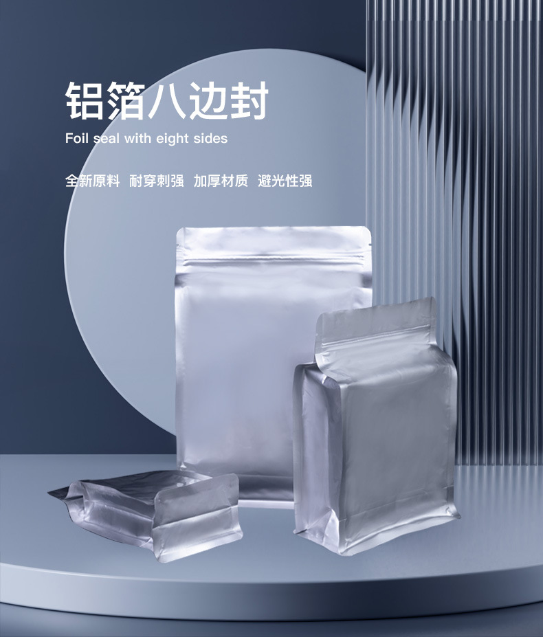 純アルミ箔八辺封密封袋茶葉間食は防湿自己封袋食品級立体ファスナー分注袋を厚くした