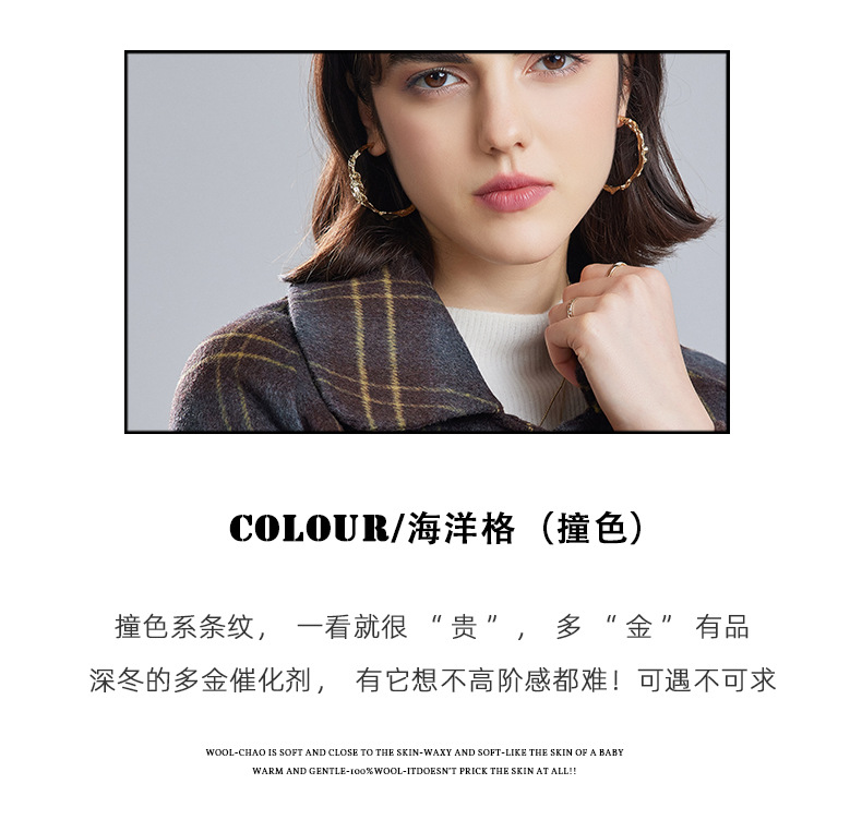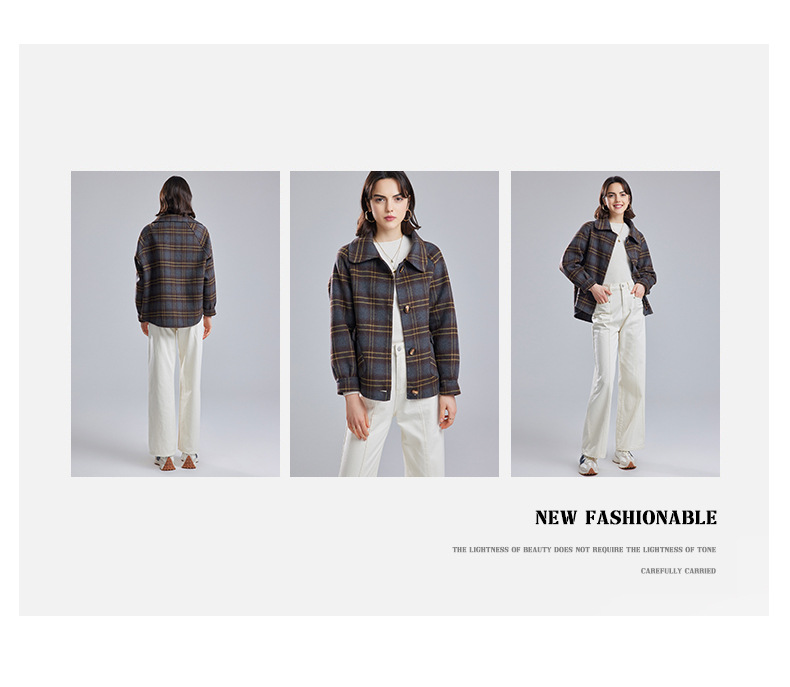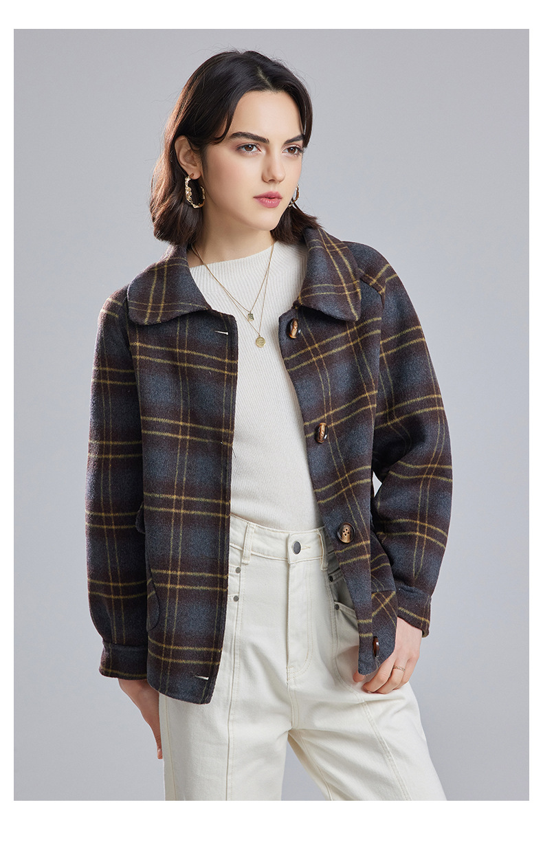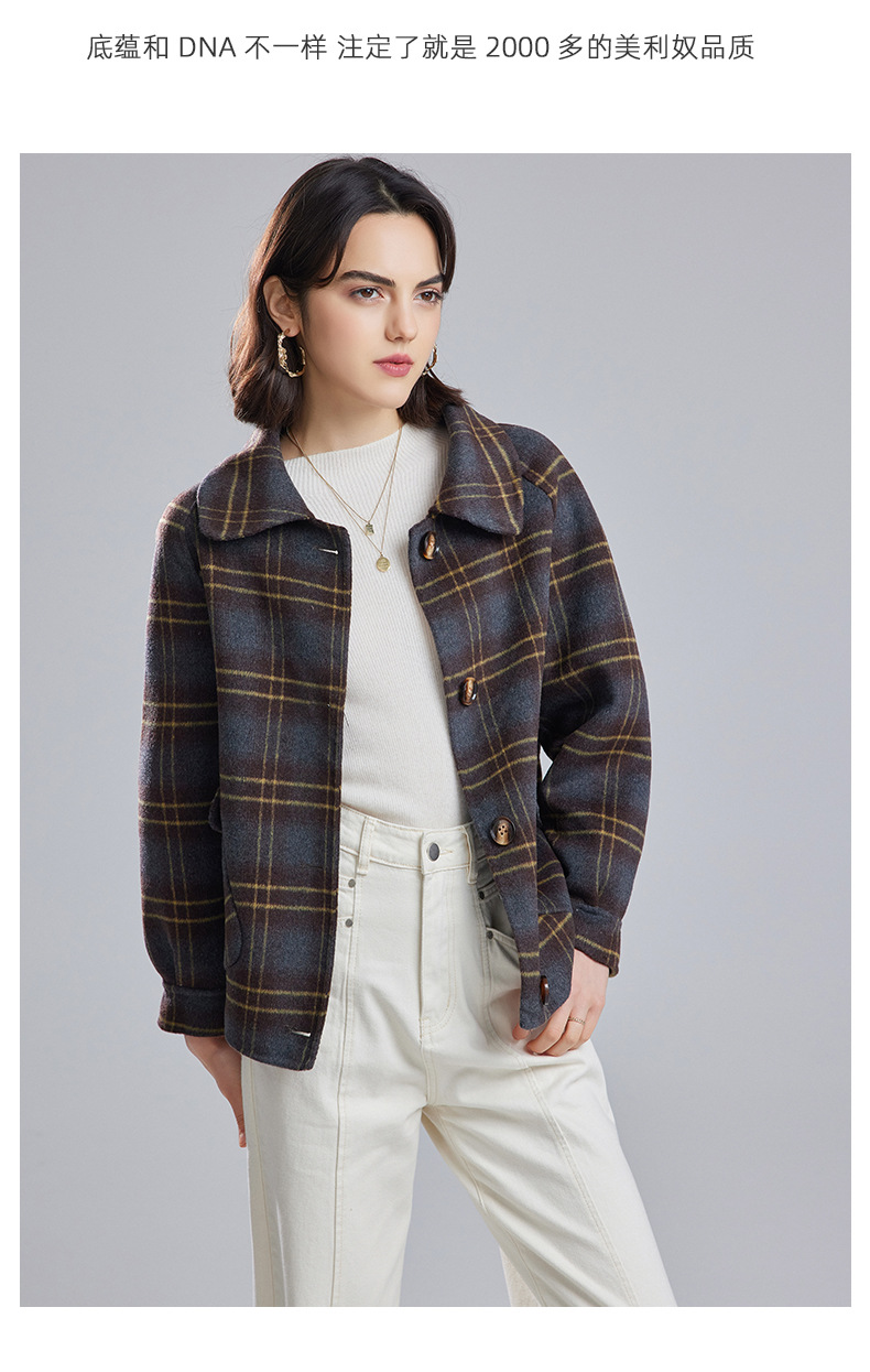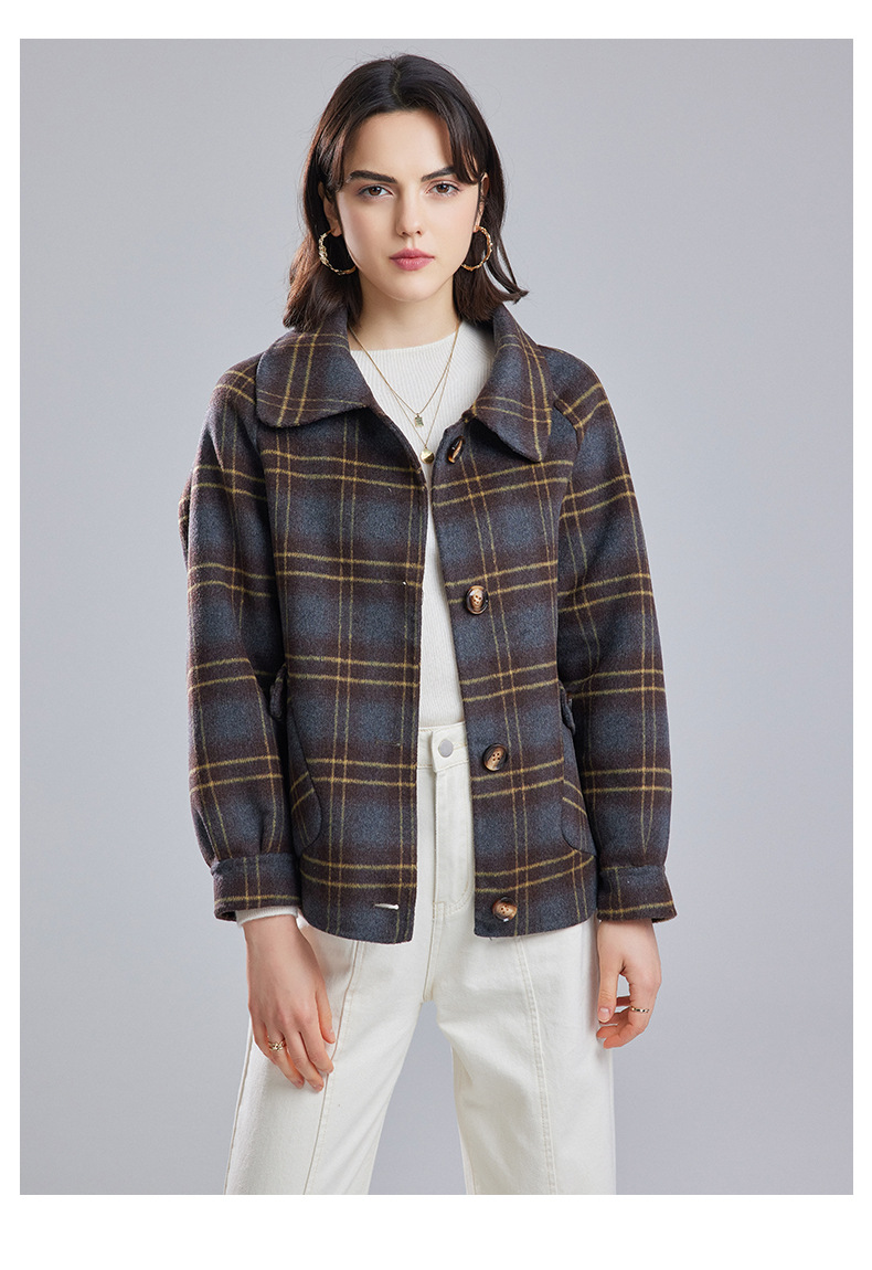 両面はウールコートの女性の短い2023秋の新しい格子の小さい子羊の毛のコートのコートです。