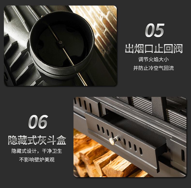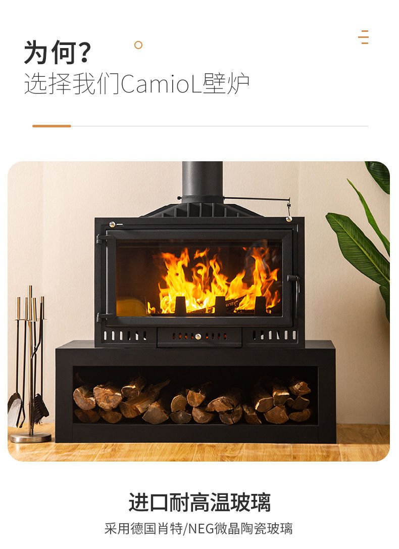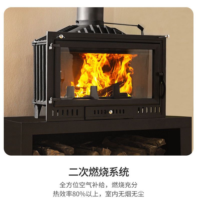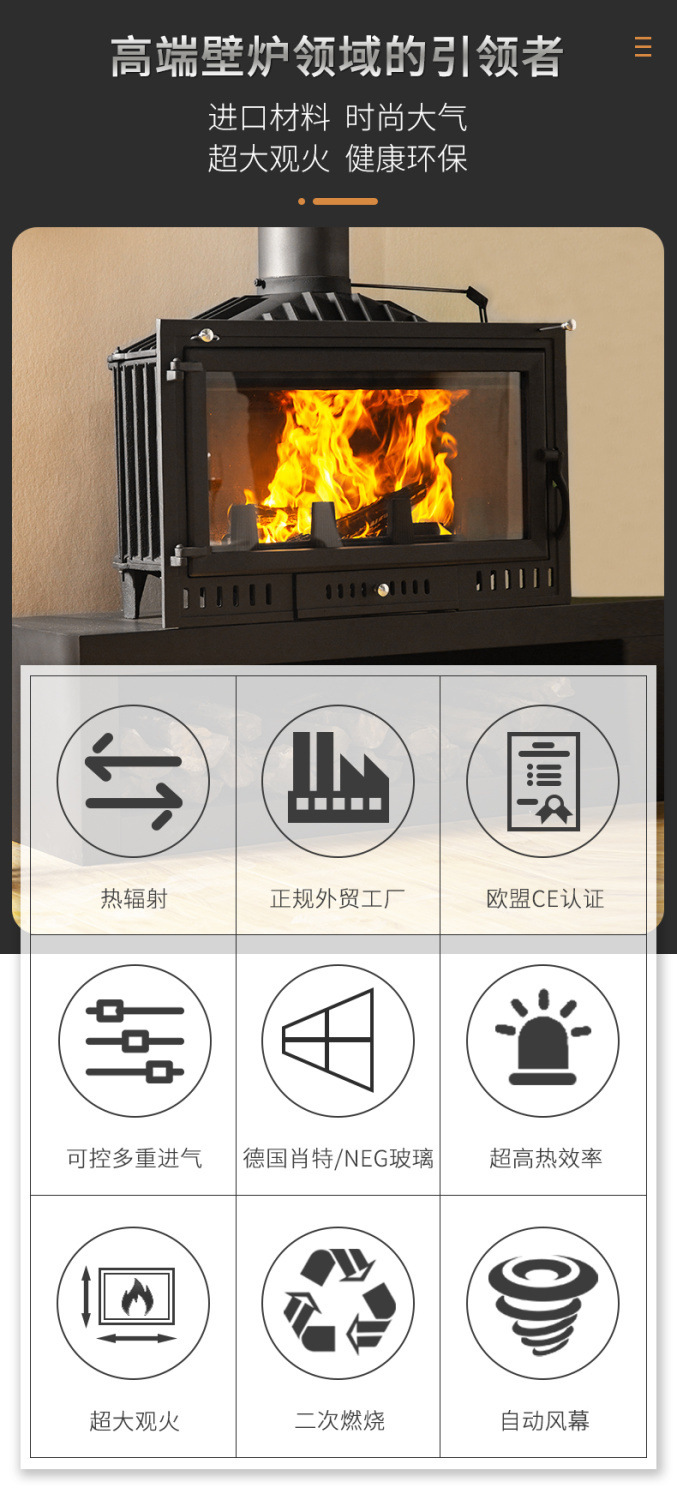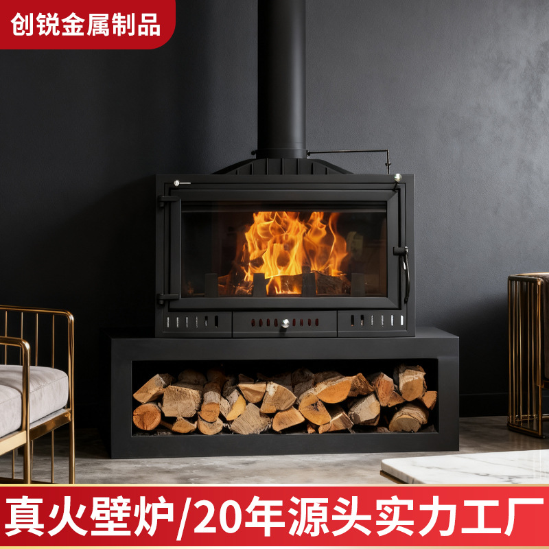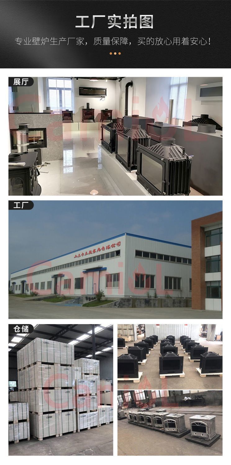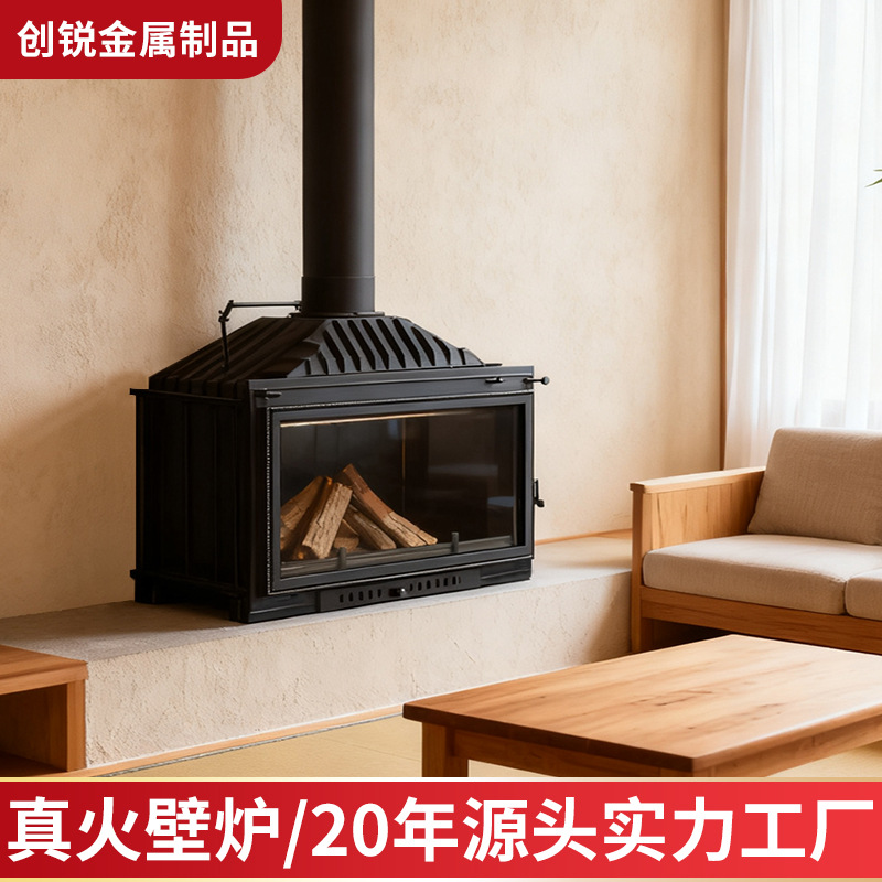 工場直営真火燃木取炉別荘家庭用現代鋳鉄埋め込み式薪炉芯暖炉