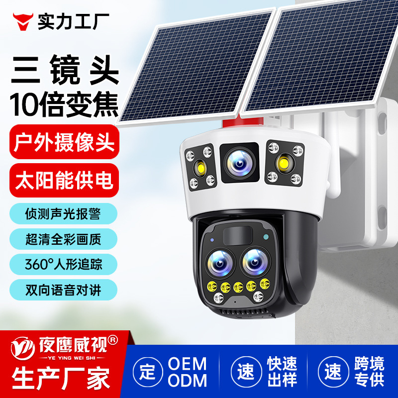 太陽エネルギー真三レンズ屋外高精細4g携帯電話遠隔カメラ屋外防水長尺航続監視