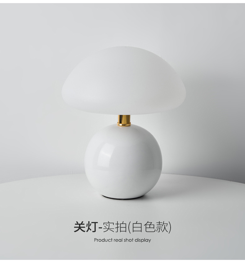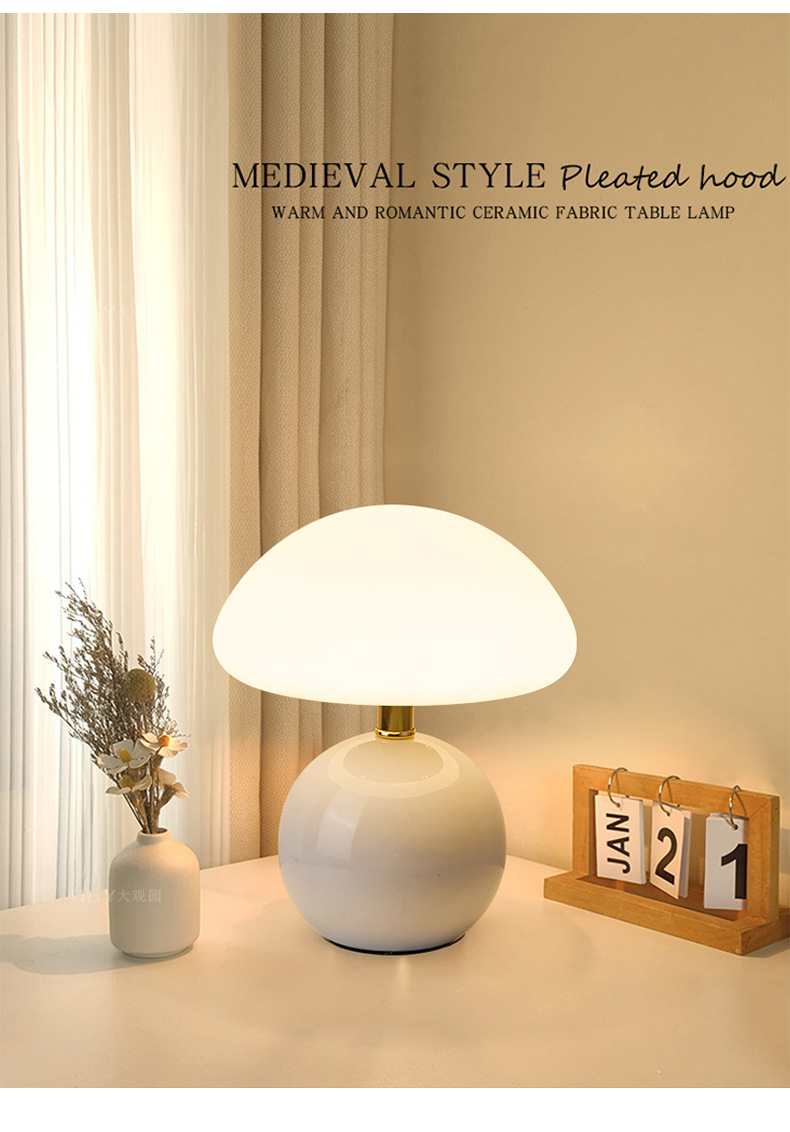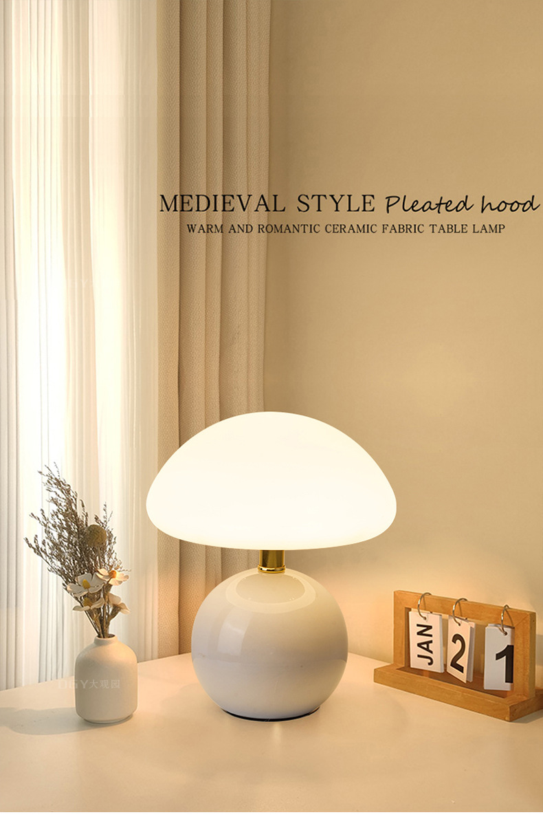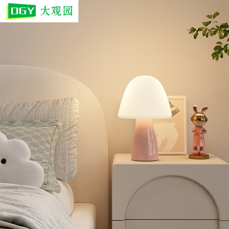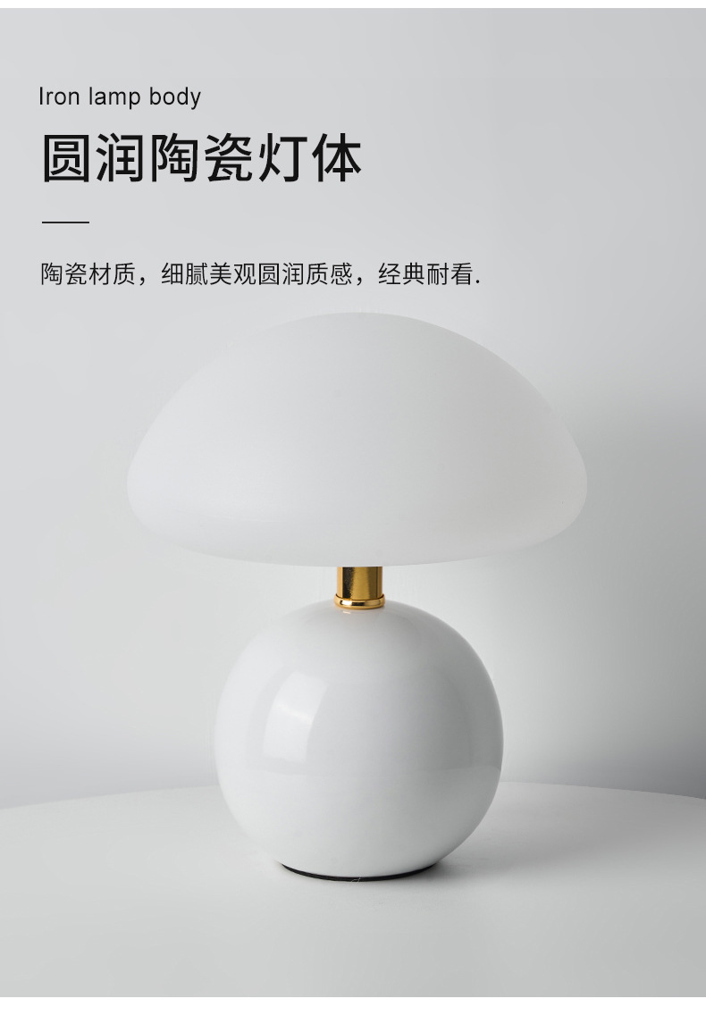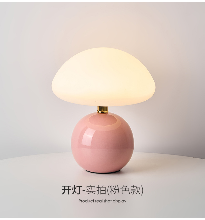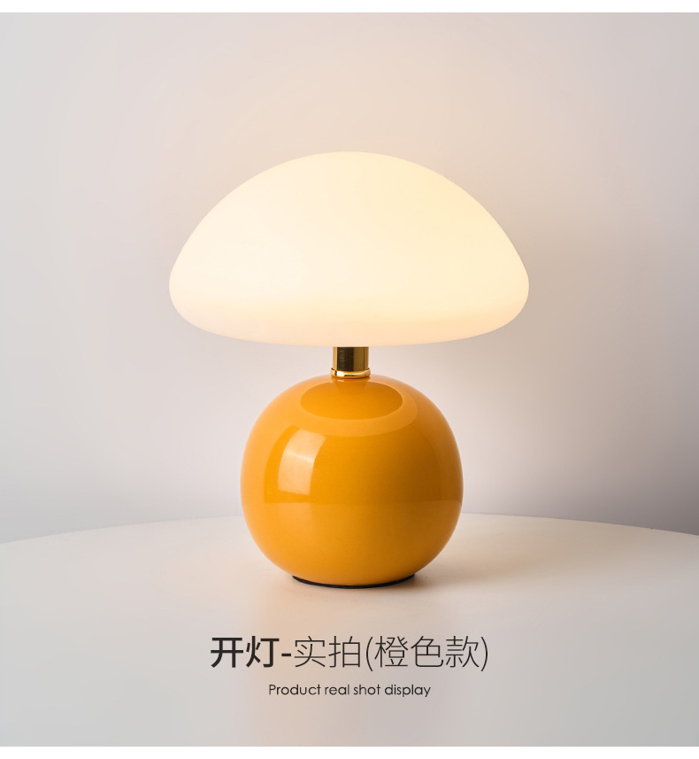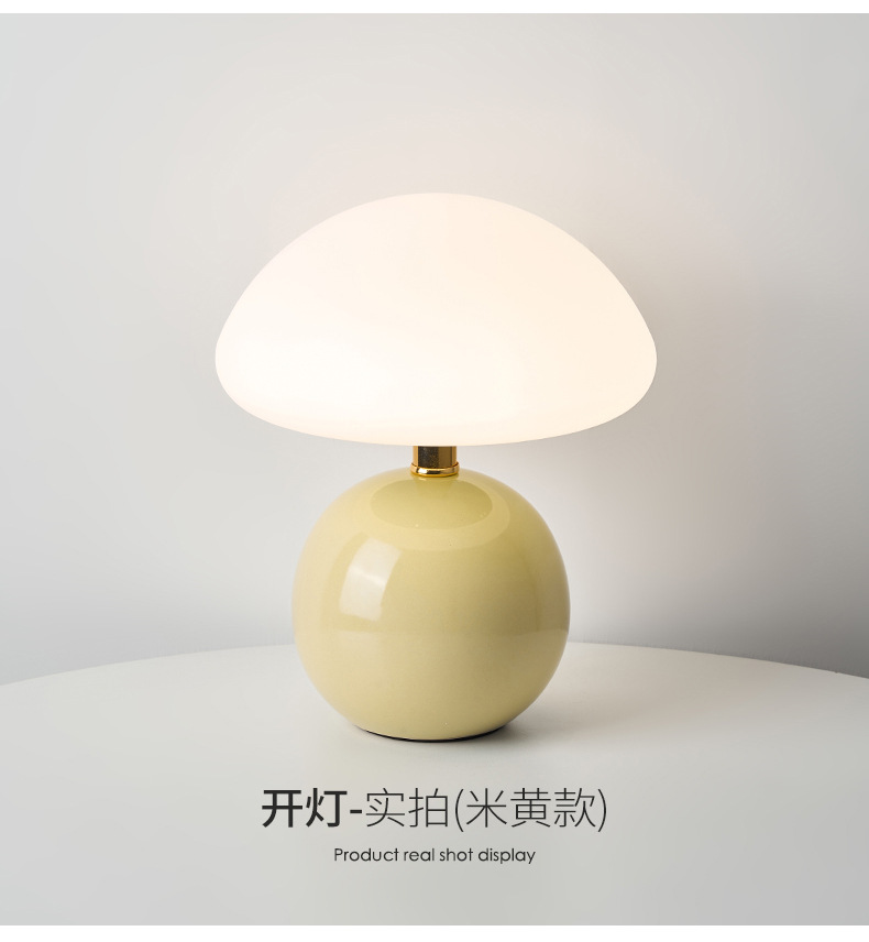 奶油风磨菇小台灯儿童护眼小夜灯卧室床头陶瓷装饰台灯房间氛围灯