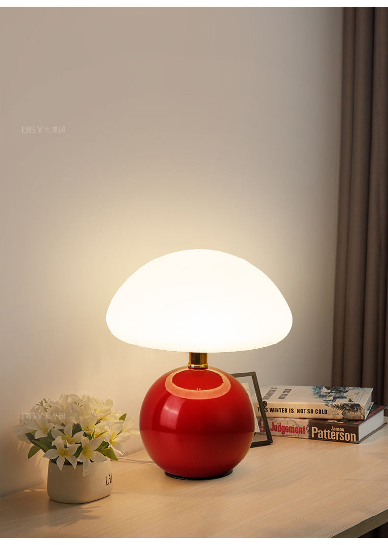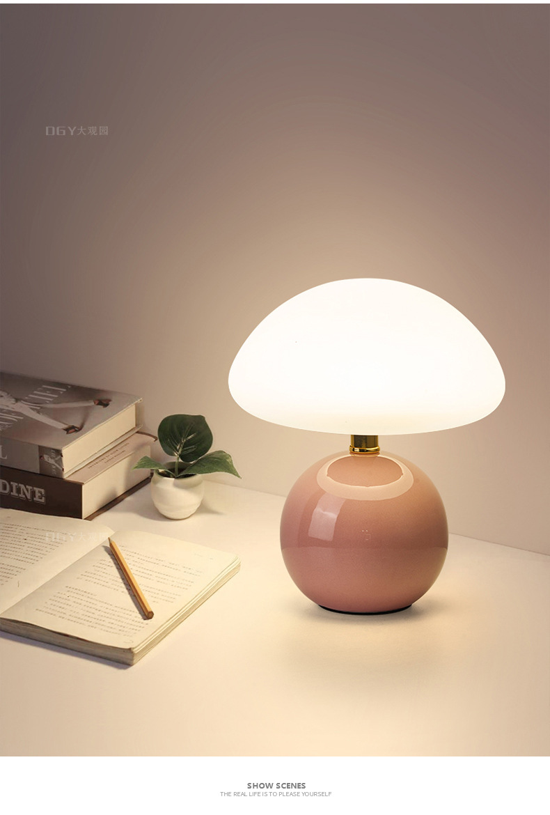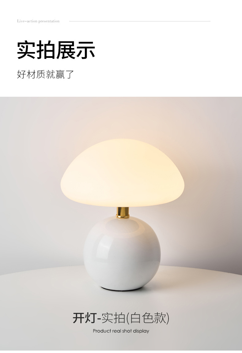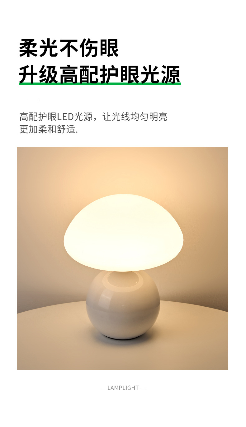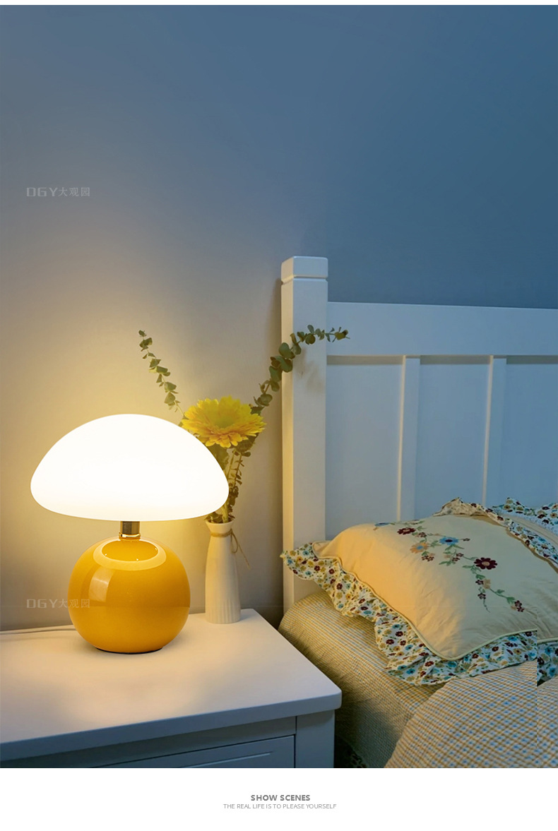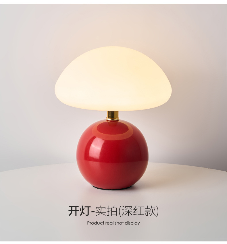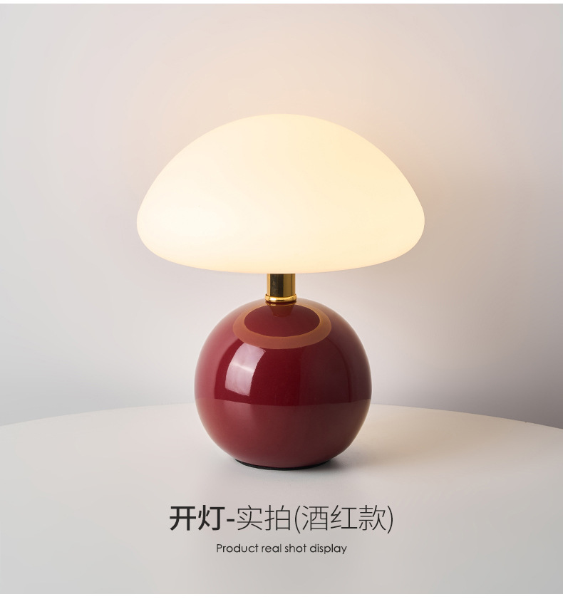 奶油风磨菇小台灯儿童护眼小夜灯卧室床头陶瓷装饰台灯房间氛围灯