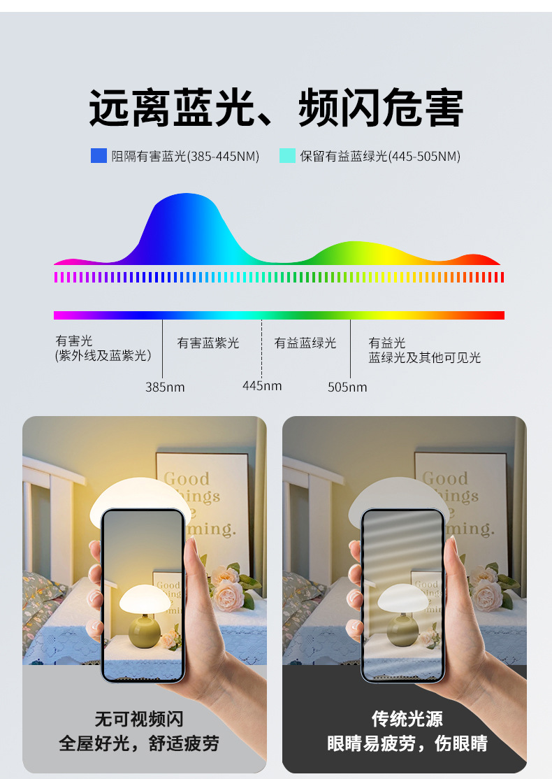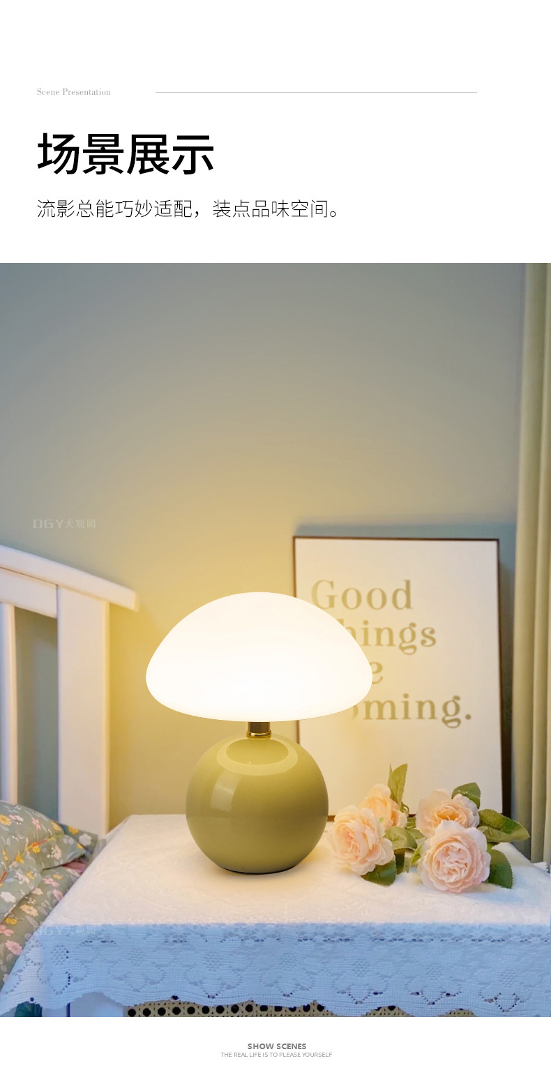 大観園の電気スタンドは現代的にシンプルで暖かいキノコのベッドのヘッドライトの雰囲気灯です。
