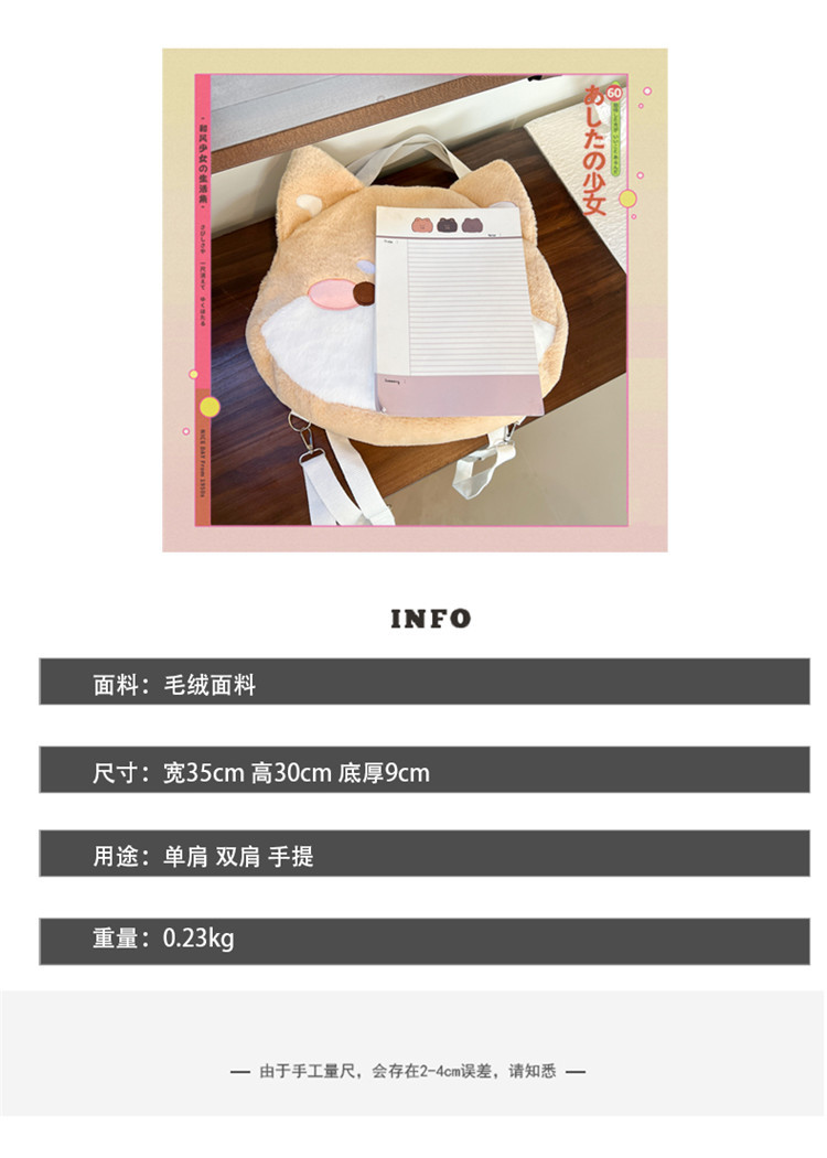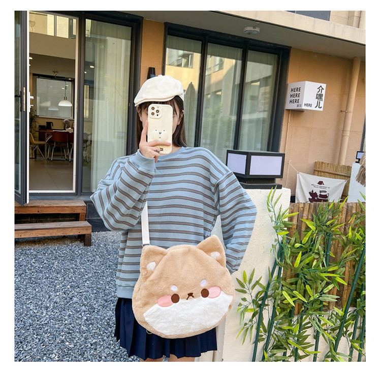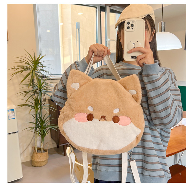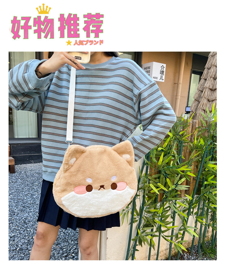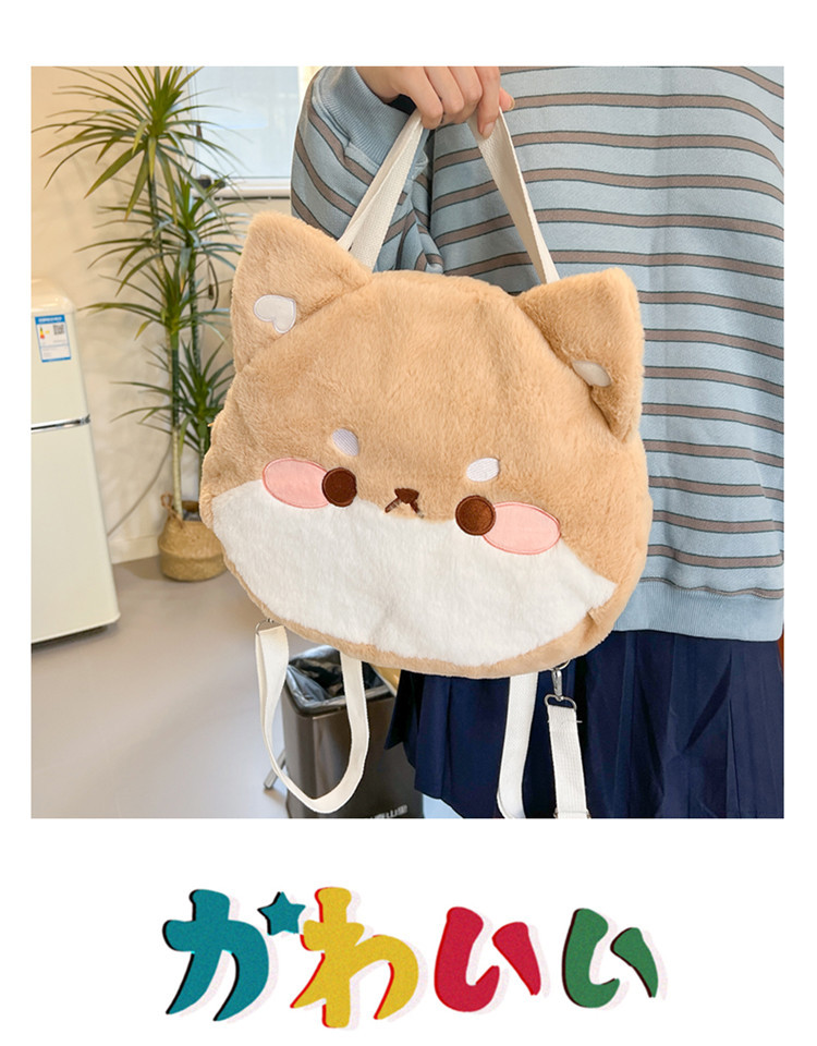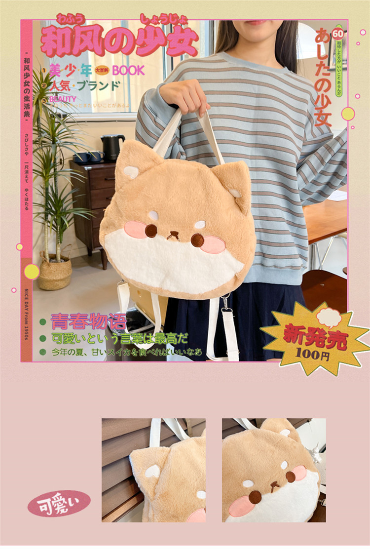 漫画柴犬ぬいぐるみバックパックかわいいソフトかわいいコーギーショルダークロスボディバッグイン日本の女の子カジュアルスクールバッグ