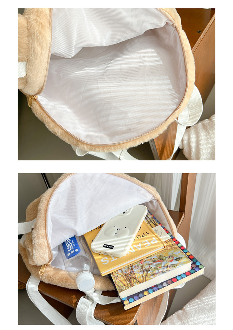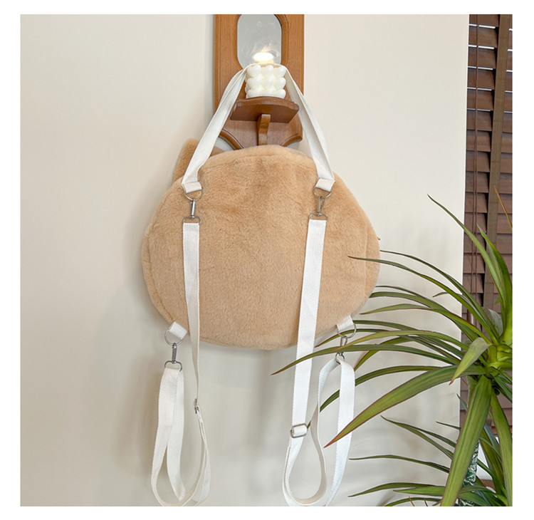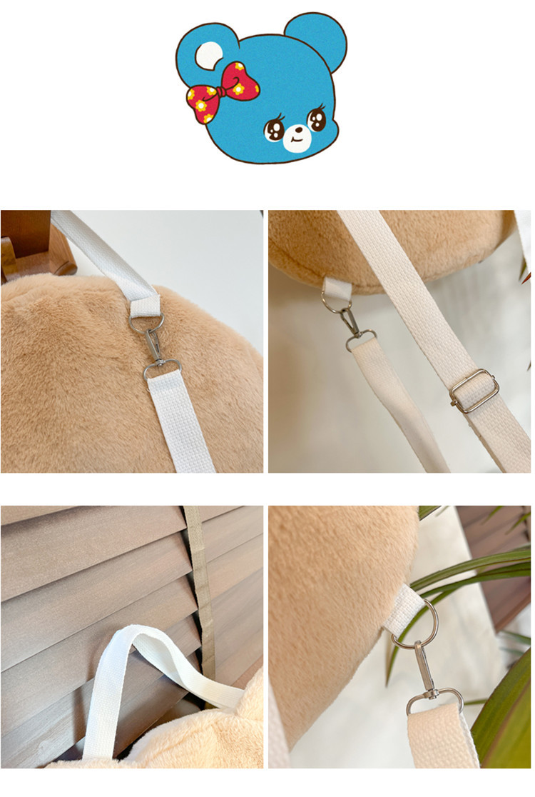 漫画のリボン付き小さな羊毛のぬいぐるみバックパック、女性用のかわいいミニバックパック、ファッショナブルで甘い動物柄のスクエアバッグ