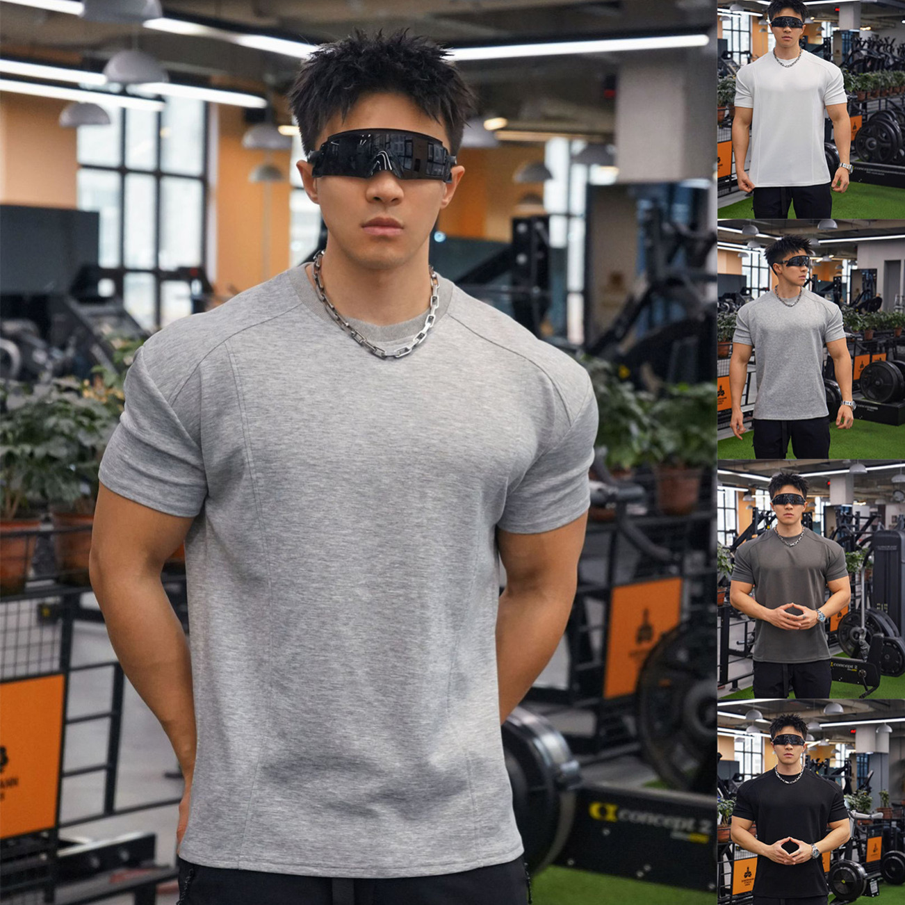 新型筋肉フィットネス男性バスケットボール兄弟トレーニング服ゆるい運動人綿半袖tシャツ上着代発