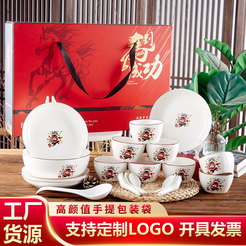 新年陶磁器食器セットギフトボウル食器皿ギフトボックスセットボウルカスタム記念品卸売馬年ギフト