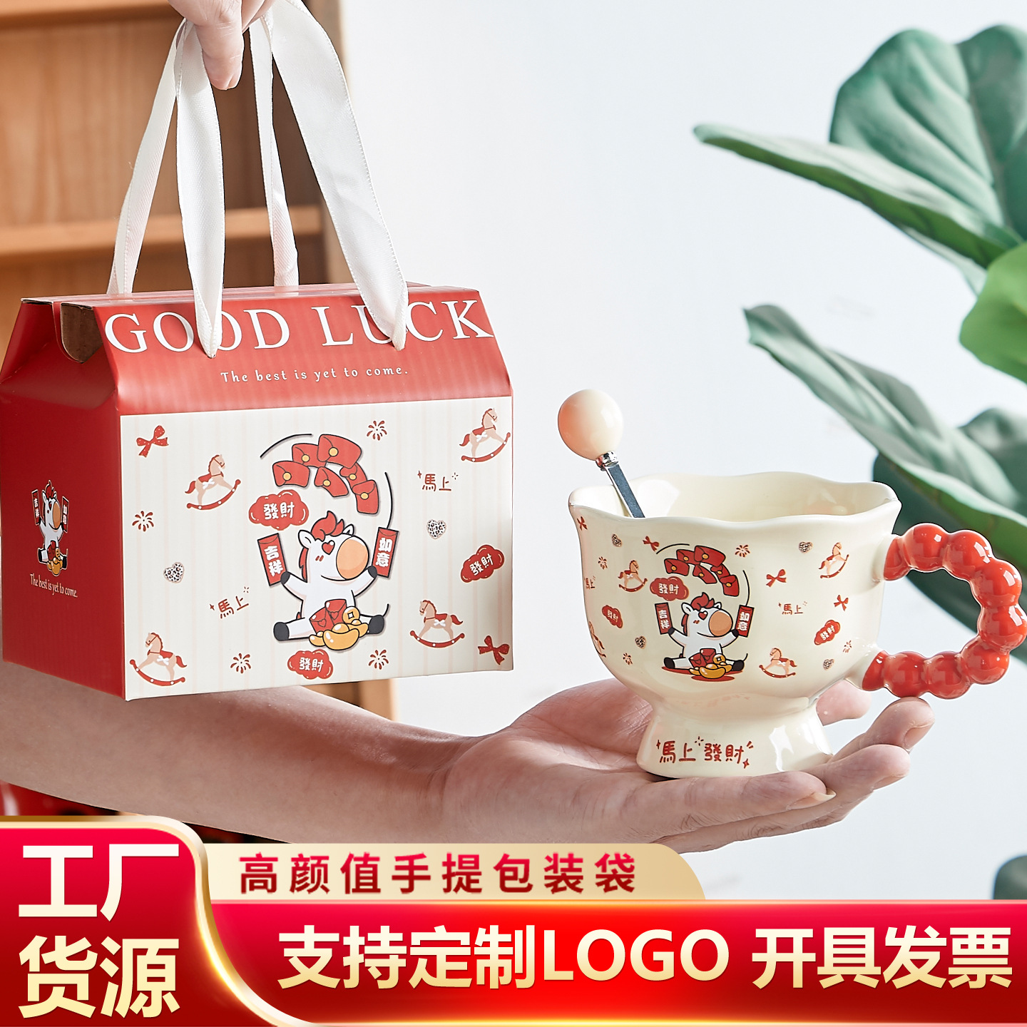 新年陶瓷杯可爱高颜值马克杯小礼品马年杯子伴手礼水杯礼盒定制