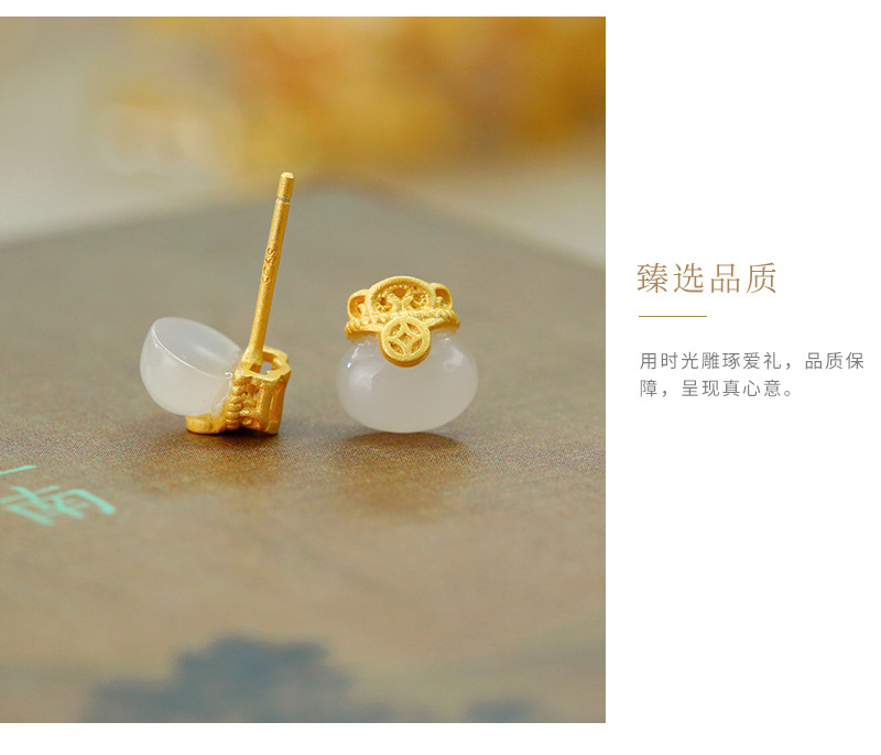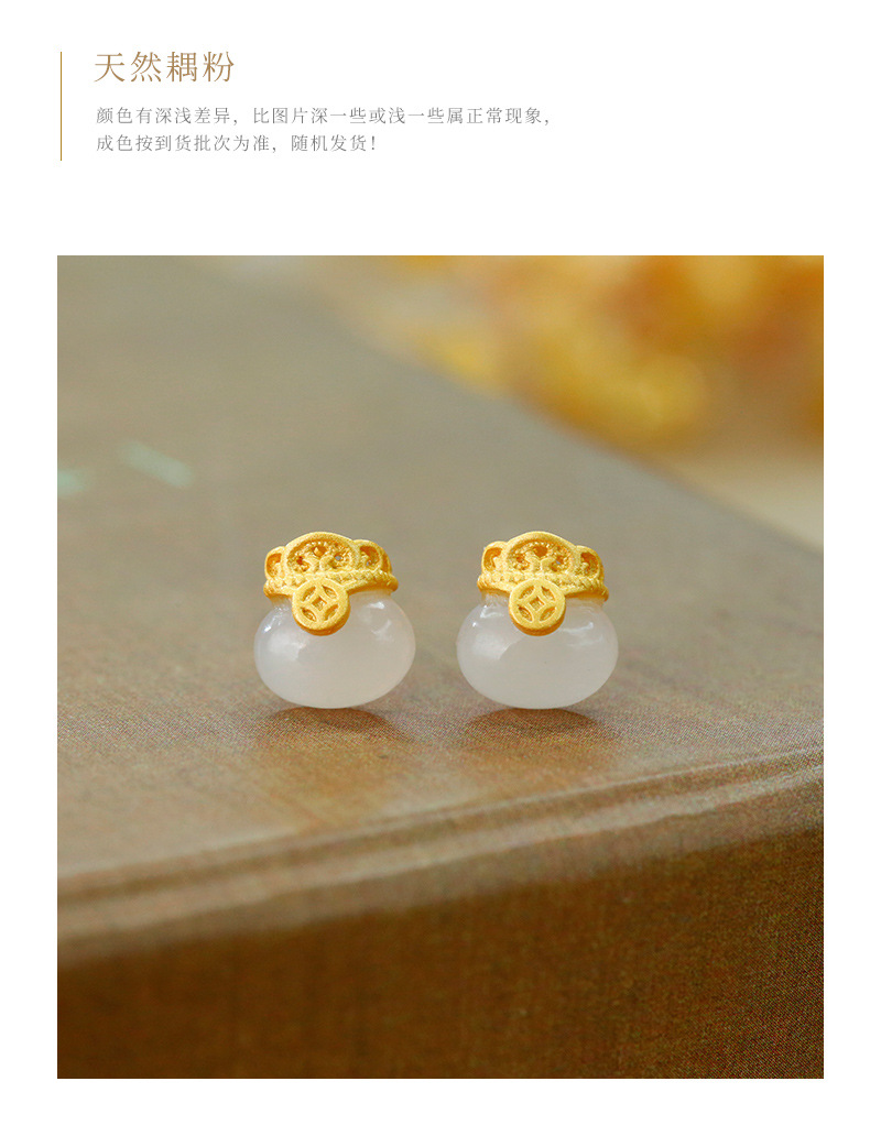 S925银天然青金石非洲翠南红葫芦镀金耳钉简约新款气质时尚女耳饰