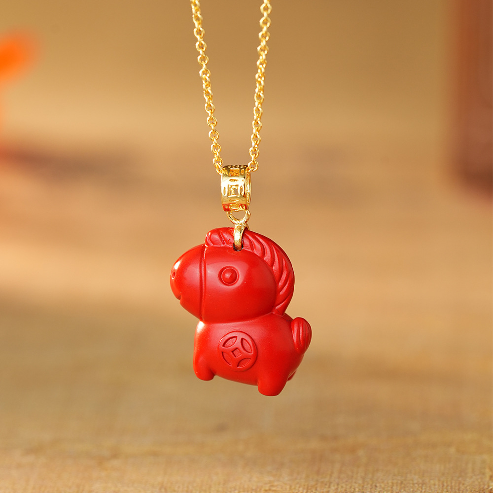 S925银镀金天然朱砂生肖马挂件吊坠个性风潮高含量气质百搭项饰