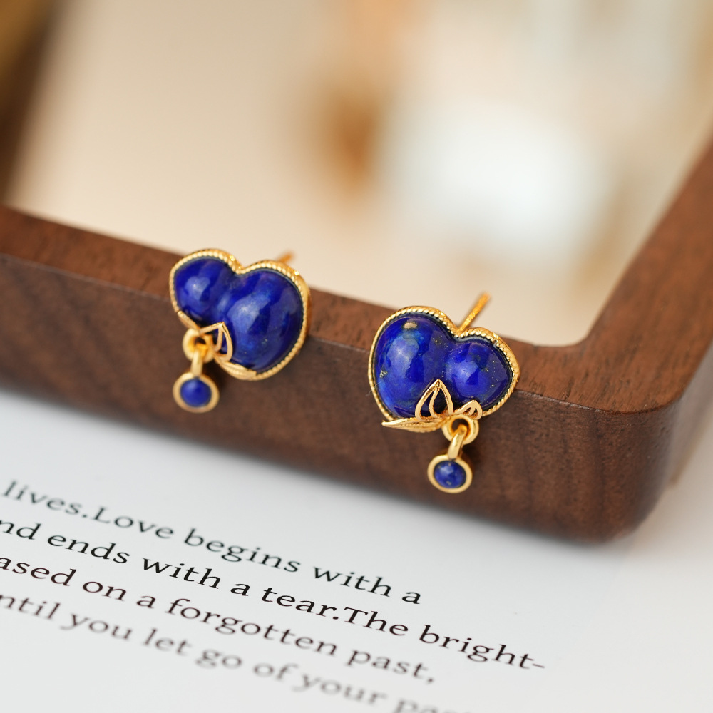 S925銀は青金石ヒョウタンのピアスをはめ込んでいます。