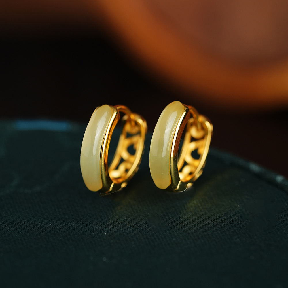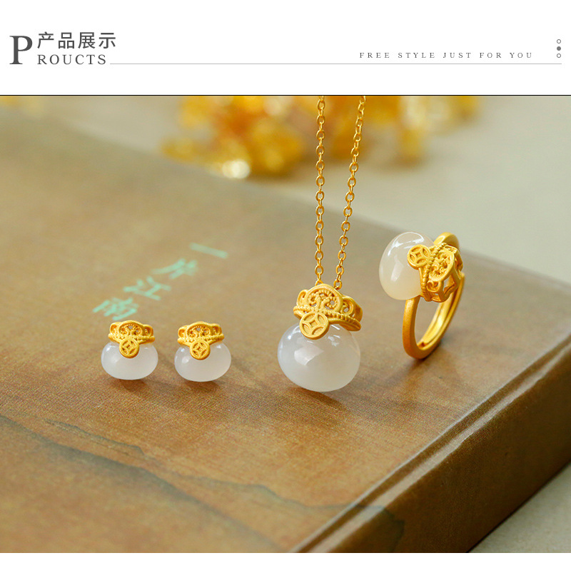 S925銀金メッキは和田玉薯粉セットペンダント耳飾り指輪2023年の新型大衆デザイン国風を飾った