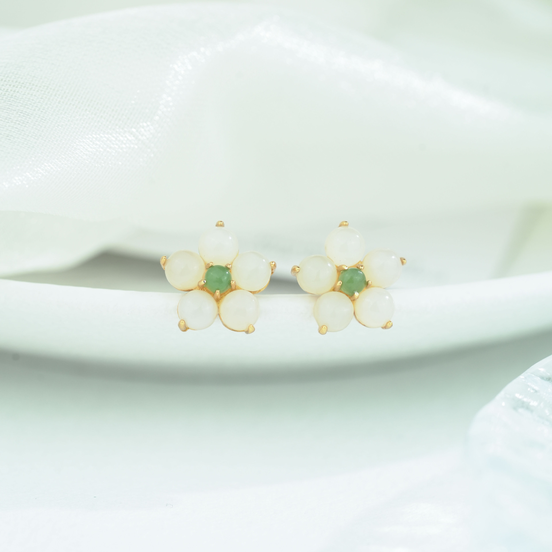 メタ宝麗s925銀金メッキモザイクと田玉三日月弧形幾何学耳ボタンクラシック百合個性女性耳飾り