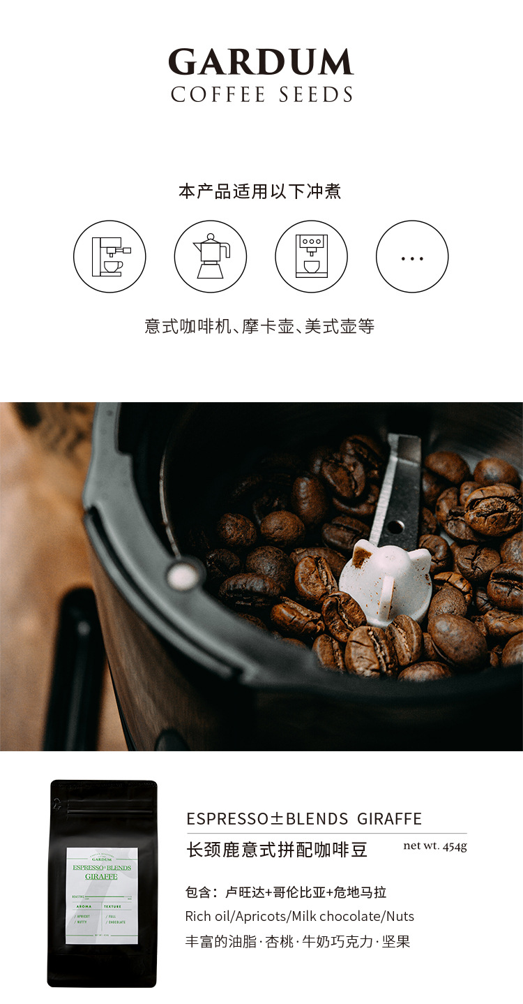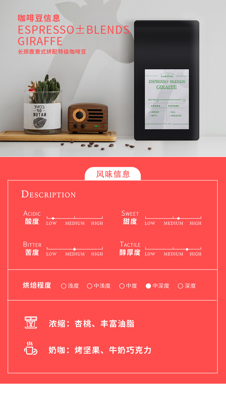 品名:长颈鹿意式拼配咖啡豆 可免费代磨粉(需备注使用器具)