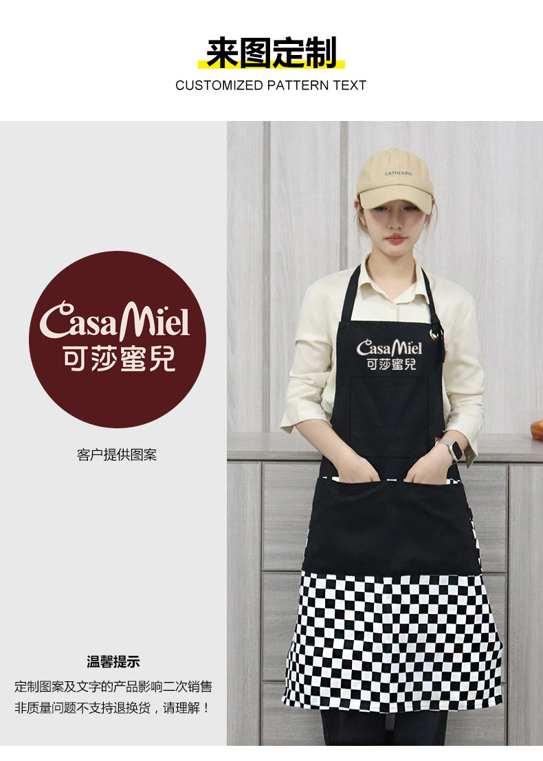 エプロン客定ロゴ花芸ミルクティー焙煎作業服女性レストラン厚手帆布ホテルキッチン理髪師男