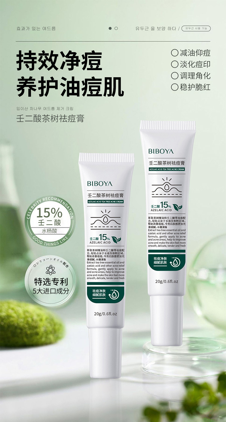 碧柏雅壬二酸茶樹はニキビクリームを消してニキビ跡のニキビ穴のにきびを薄めます。