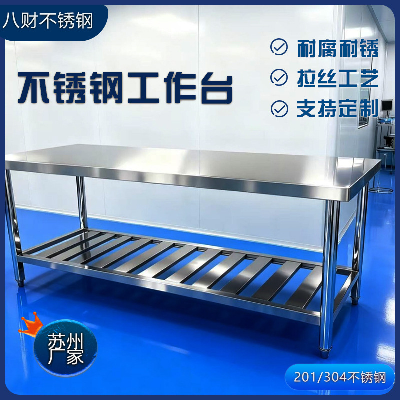 加厚201/304不锈钢工作台 批发学校工厂食堂洁净双层不锈钢工作台