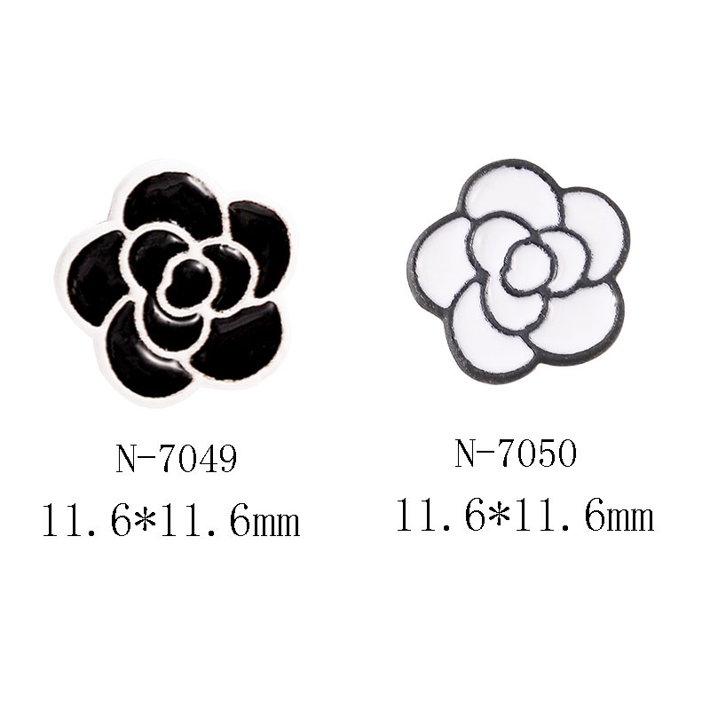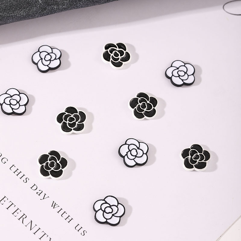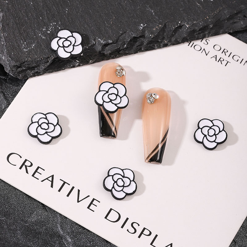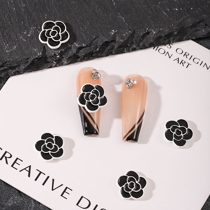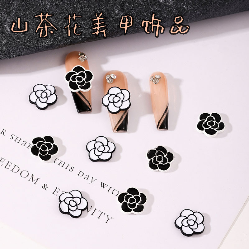 インターネット有名人Xiaoxiangfengネイルアート合金ジュエリー黒と白の椿シンプルなフレンチネイルメタルアクセサリー卸売