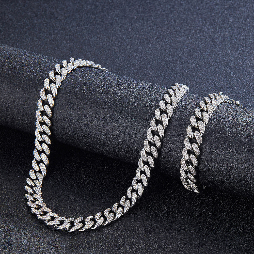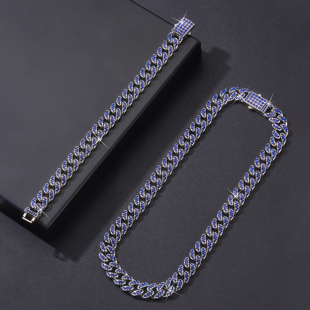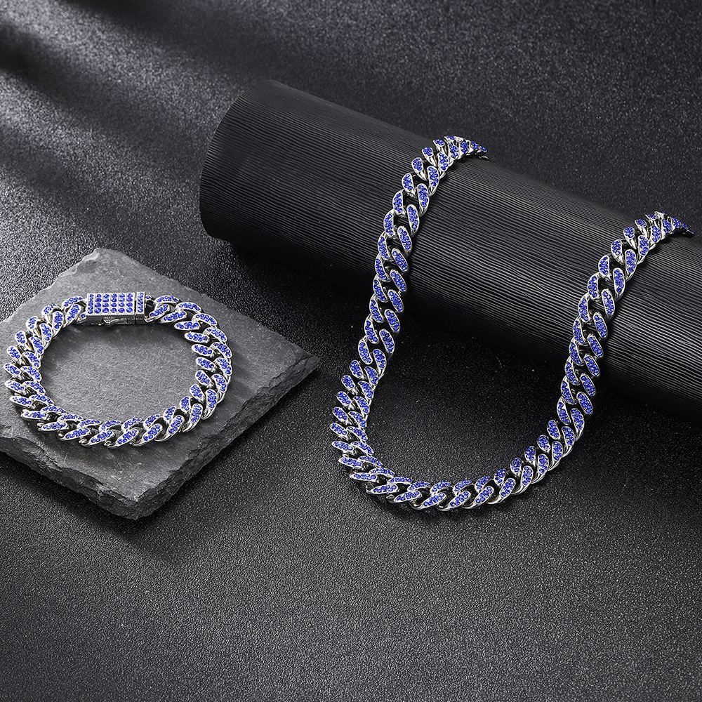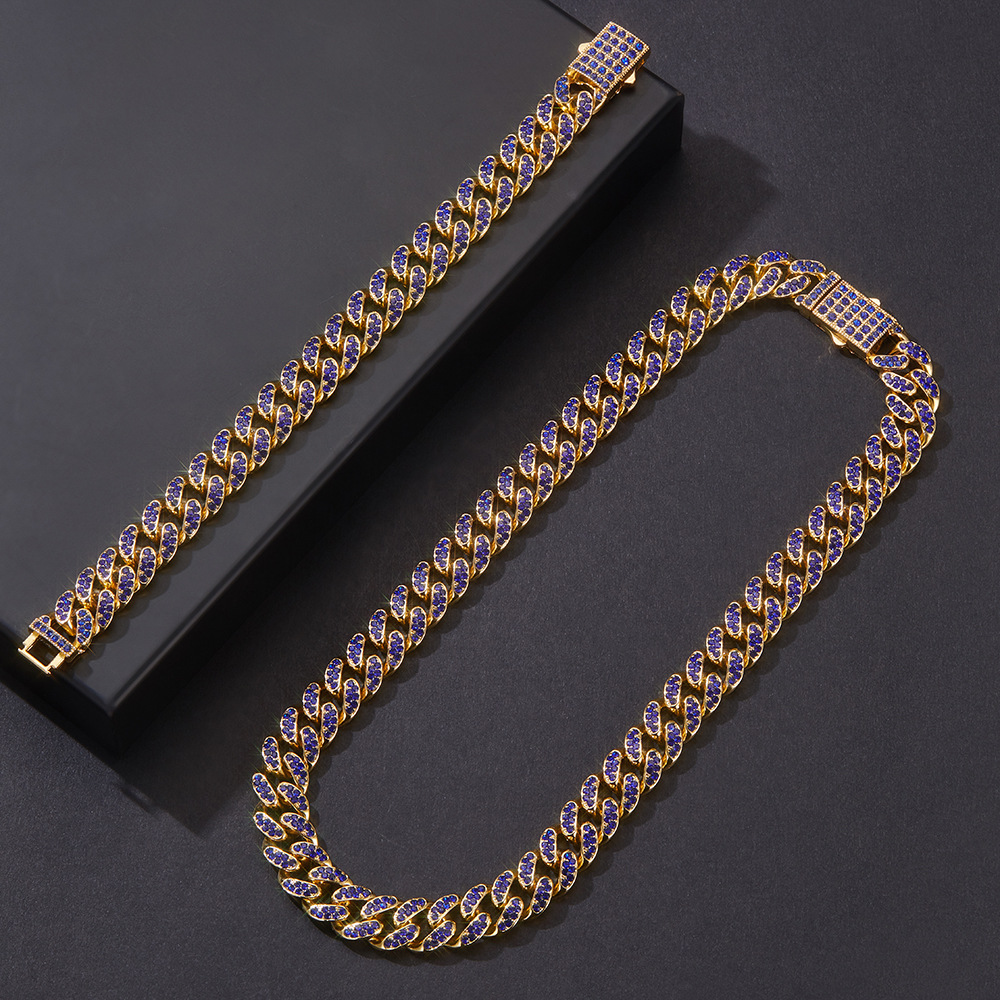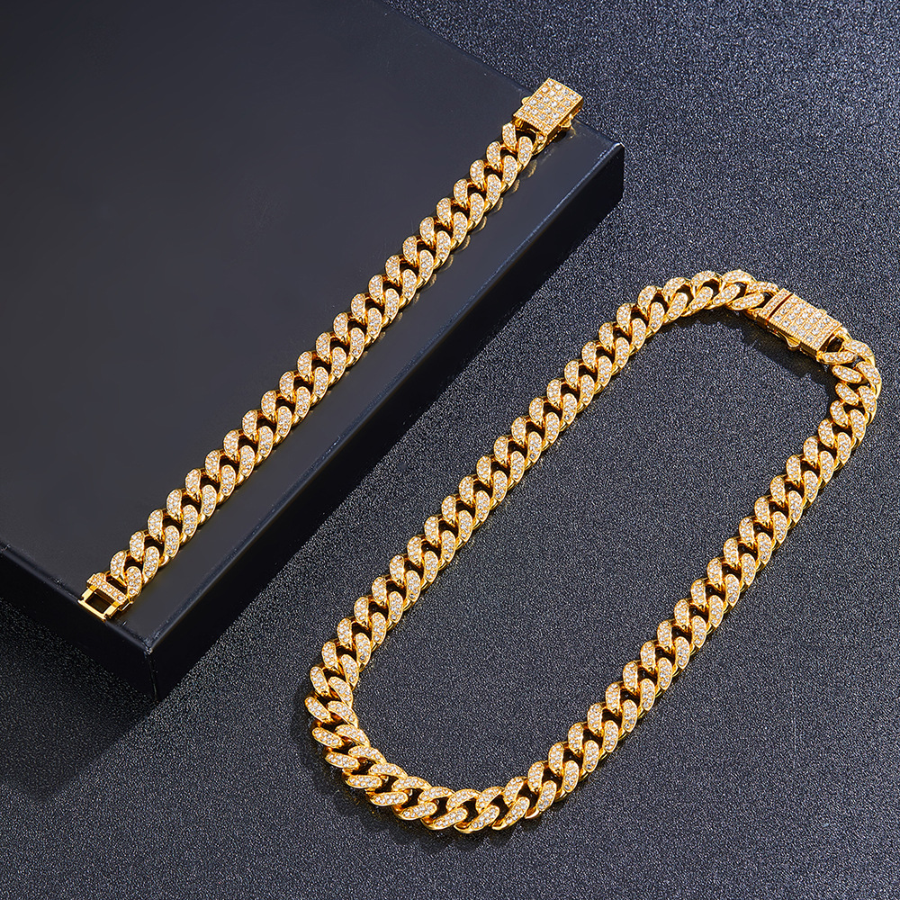 12mmキューバチェーンクロスボーダー軽豪華ファッション百合合金ドリル男女同金スキューバネックレス源工場