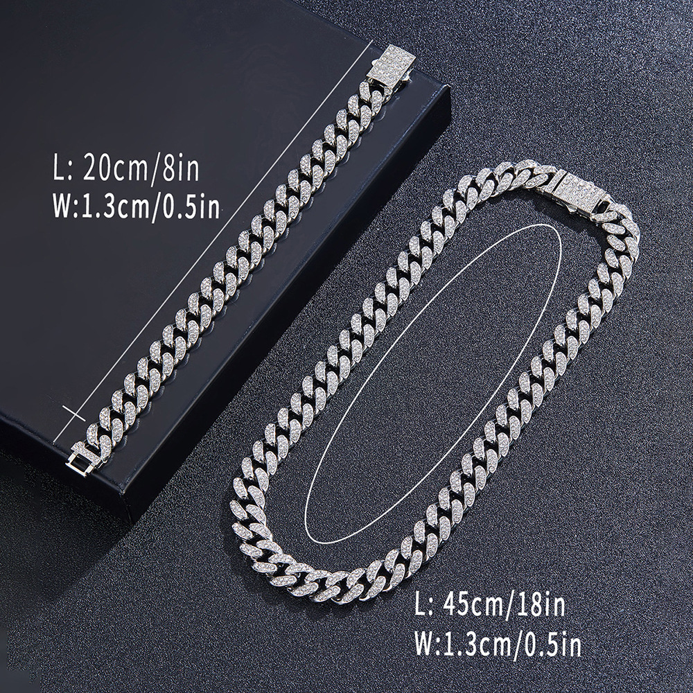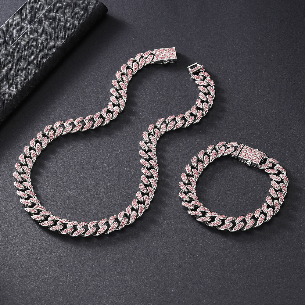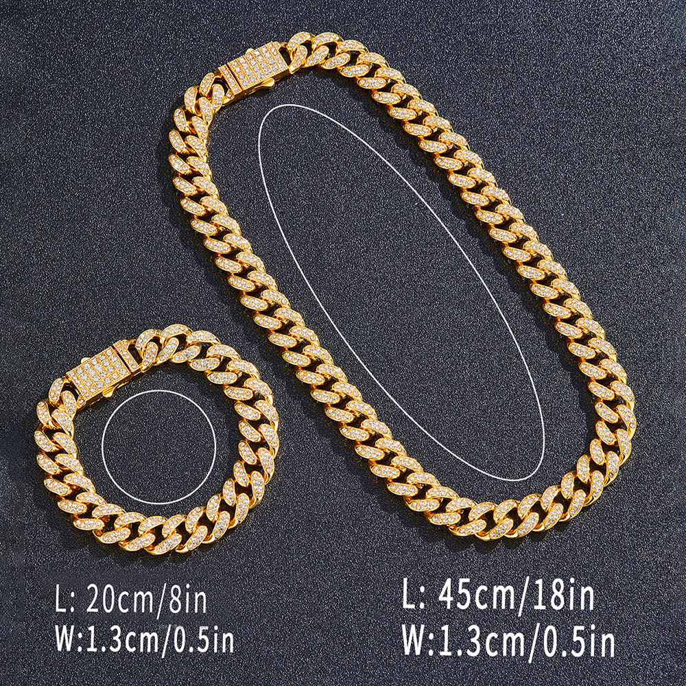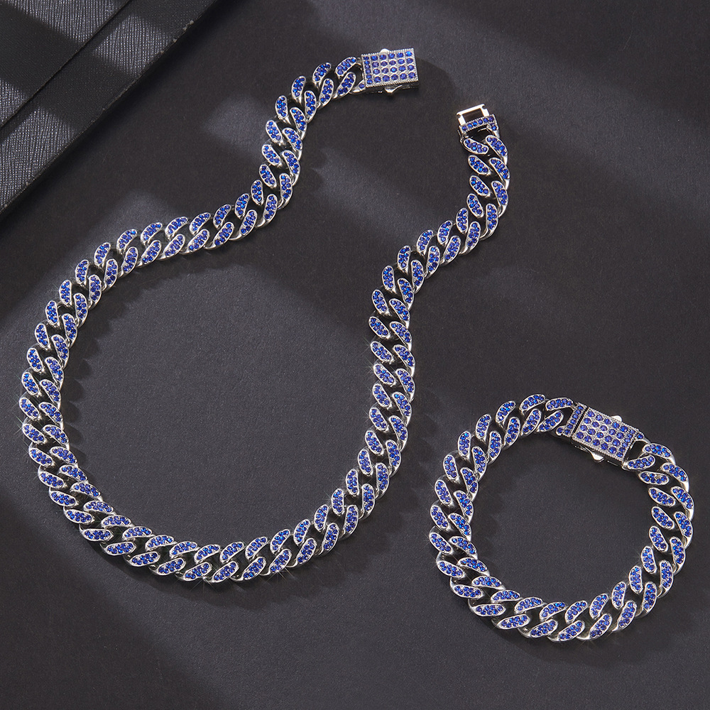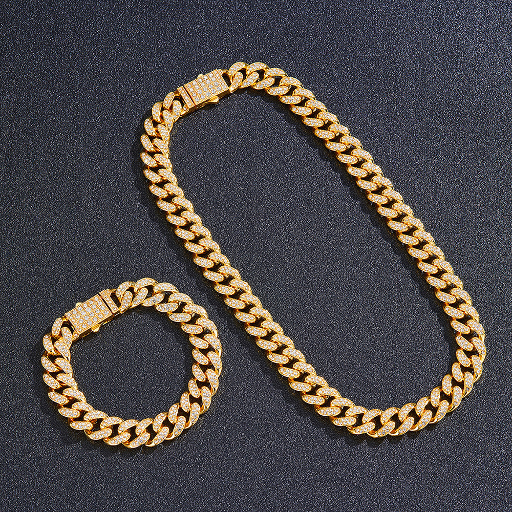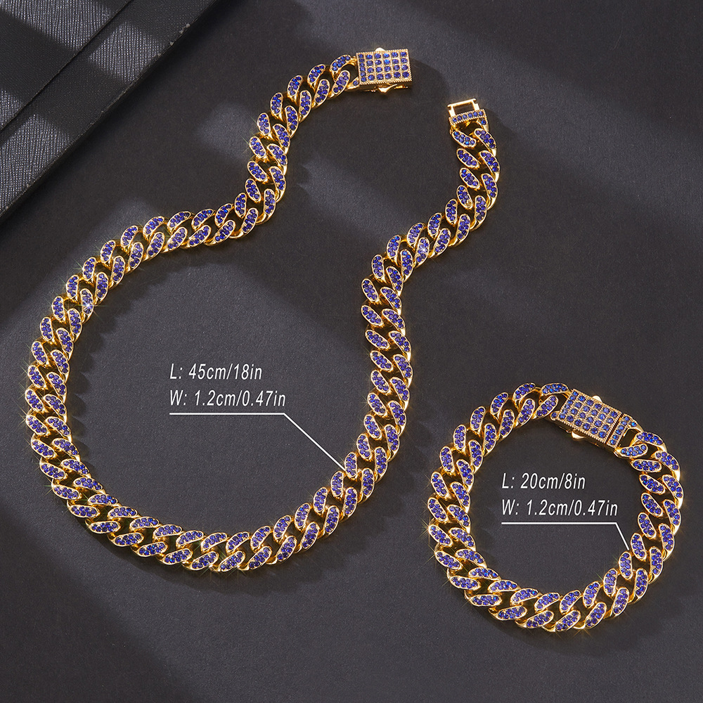 12mmキューバチェーンクロスボーダー軽豪華ファッション百合合金ドリル男女同金スキューバネックレス源工場