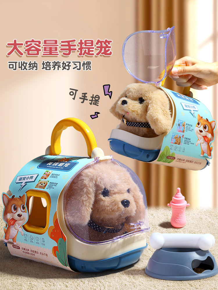 子供の電動シミュレーション白いウサギは女の子のペットの人形のリュックサックの犬のプレゼントのぬいぐるみを呼びます。