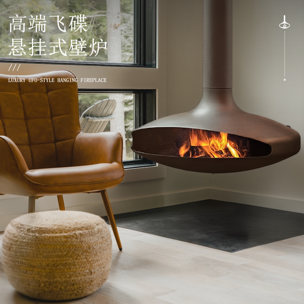 悬挂飞碟壁炉真火木柴别墅燃木酒精取暖壁炉【可定 制高度颜色】