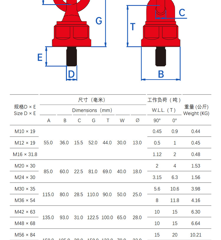 仕様 M10 * 19mm,M12*19mm,M16 * 31.8mm,M 20*30mm,M24*30mm,M30*35mm,M 36*54mm,M 42*63mm,M 48*68mm,M 56*84mm,M64*95mm