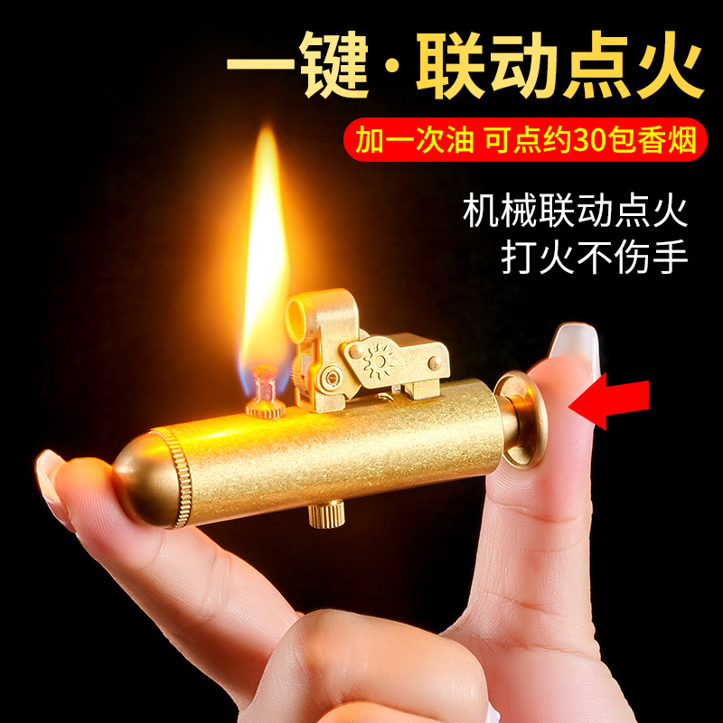 096創意潜水艦復古純銅灯油ライターのワンタッチ連動革新押し式火気灯油ライター