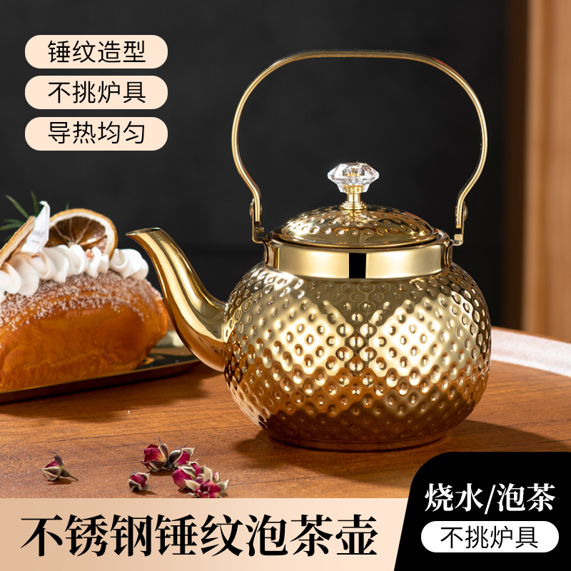 国境を越えたステンレス湯たんぽホテルレストランのティーポット家庭用水筒大容量金色提梁ポット