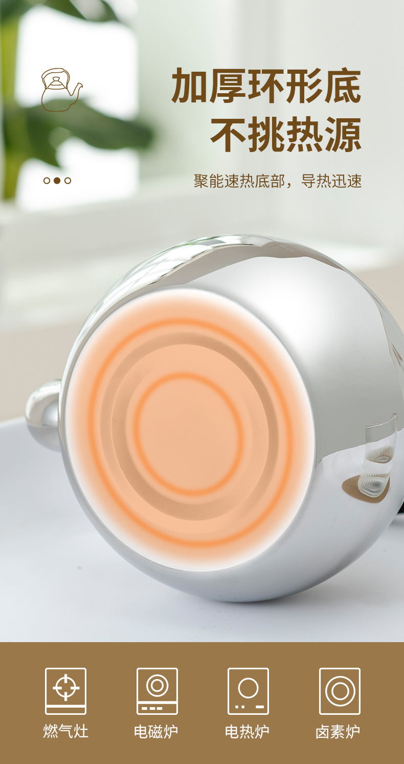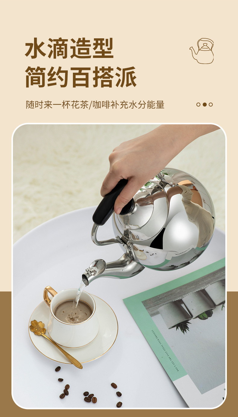 JHL越境ステンレス厚底湯沸かしポット 家庭用茶器 水滴ポット 業務用持ち手付きポット 雪梨ポット ケトル