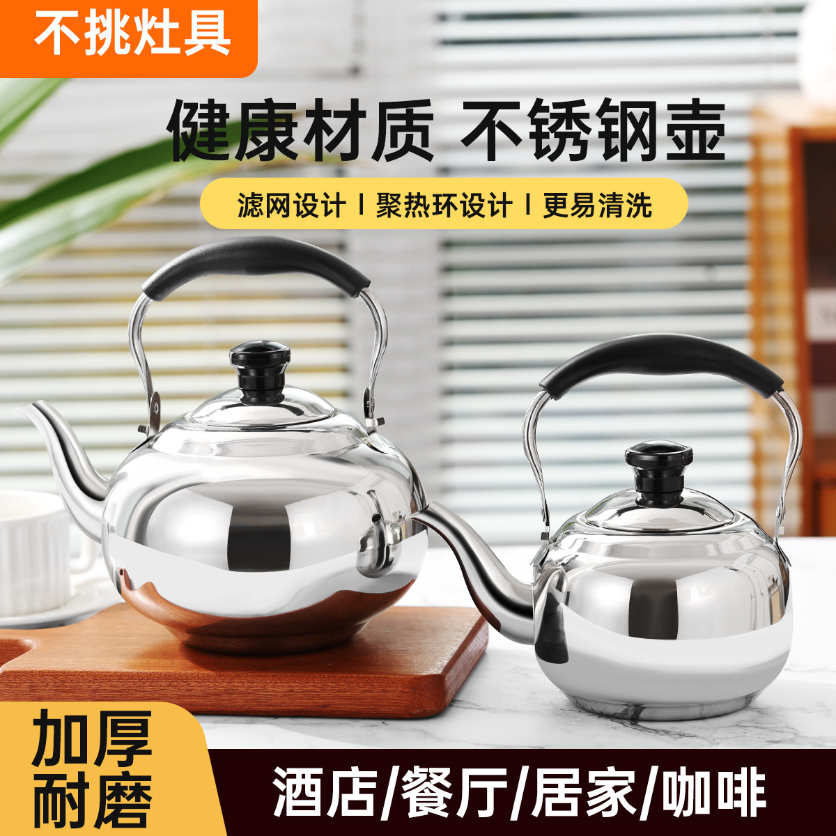 加厚不锈钢煮水茶壶饭店餐厅带网玲珑壶家用户外电磁炉通明火防烫