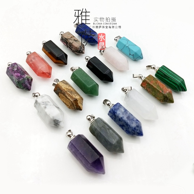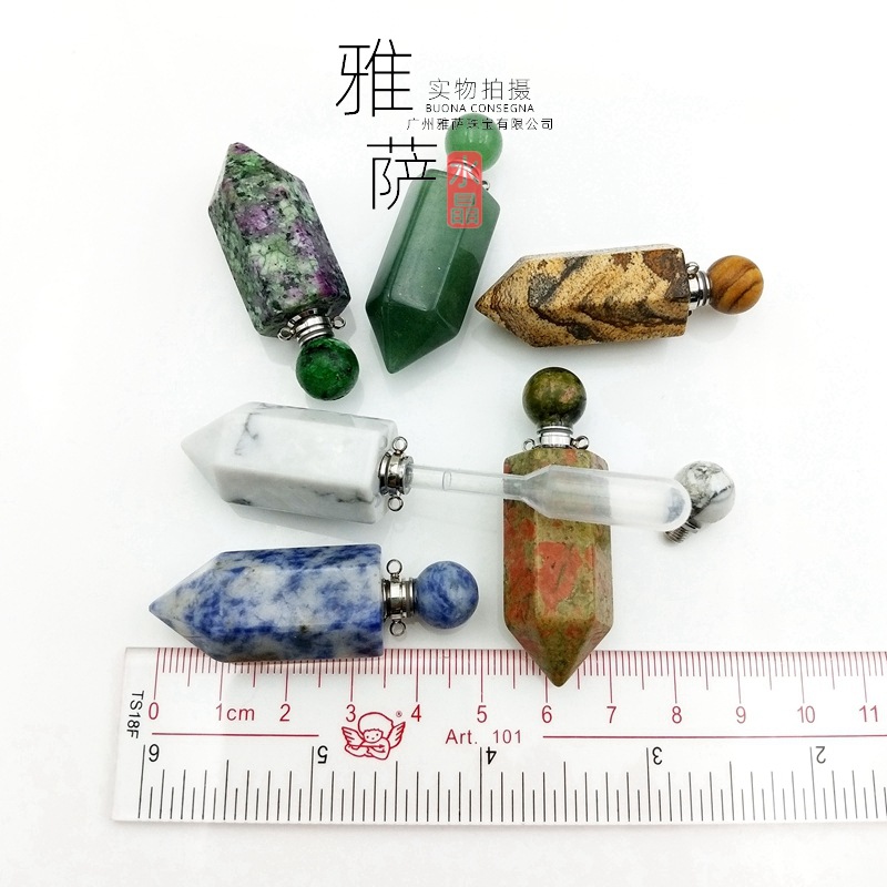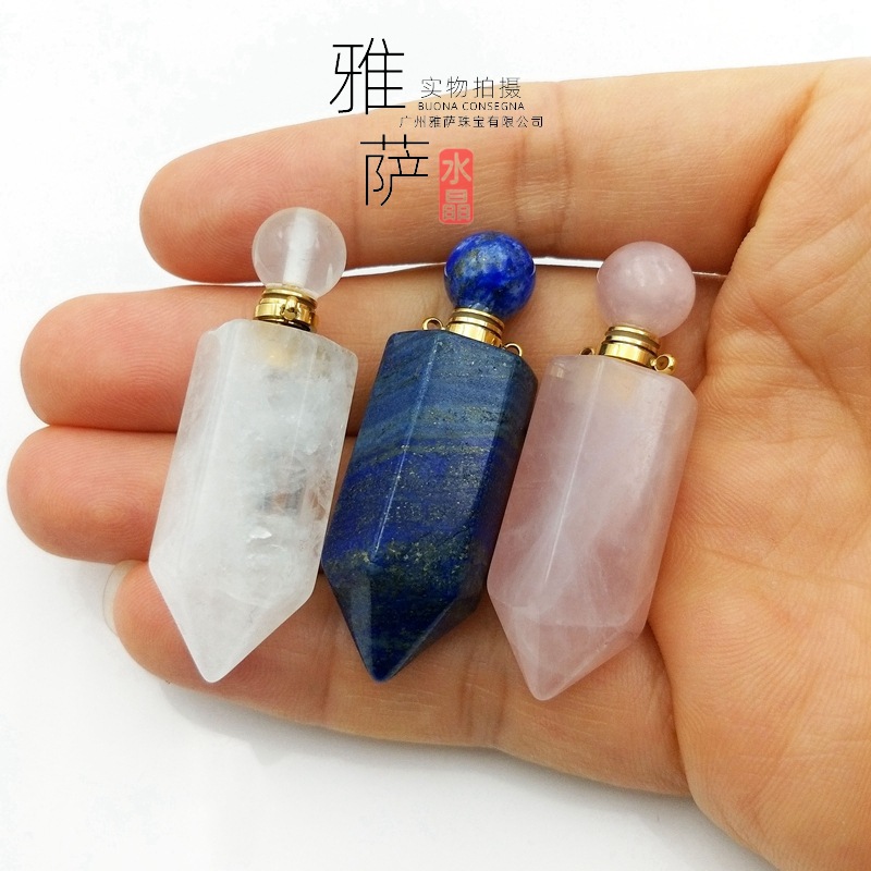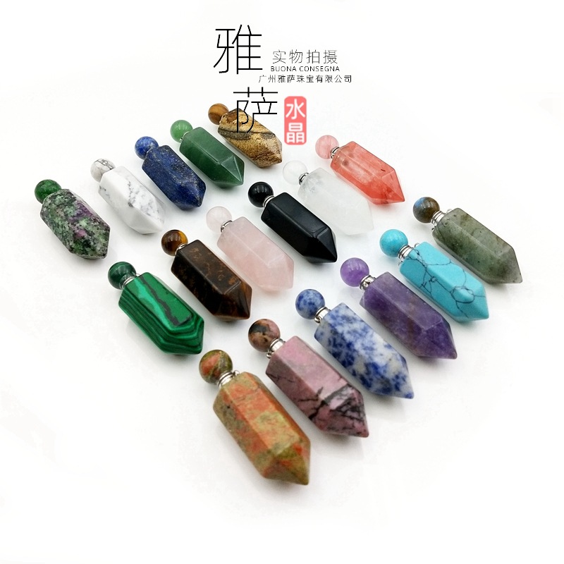 天然水晶六角柱香水瓶ペンダントネックレス女性欧米国境を越えた対外貿易新製品花緑宝精油瓶