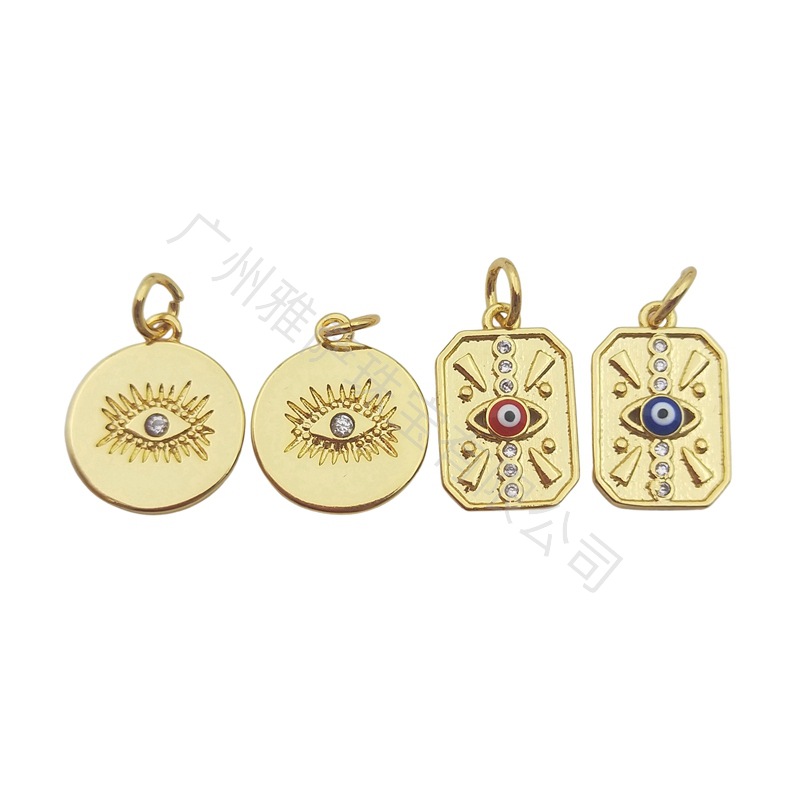 金メッキの個性的な悪魔の目にジルコンの幾何学的な形のペンダントdiyブレスレットのネックレスの部品を入れます。