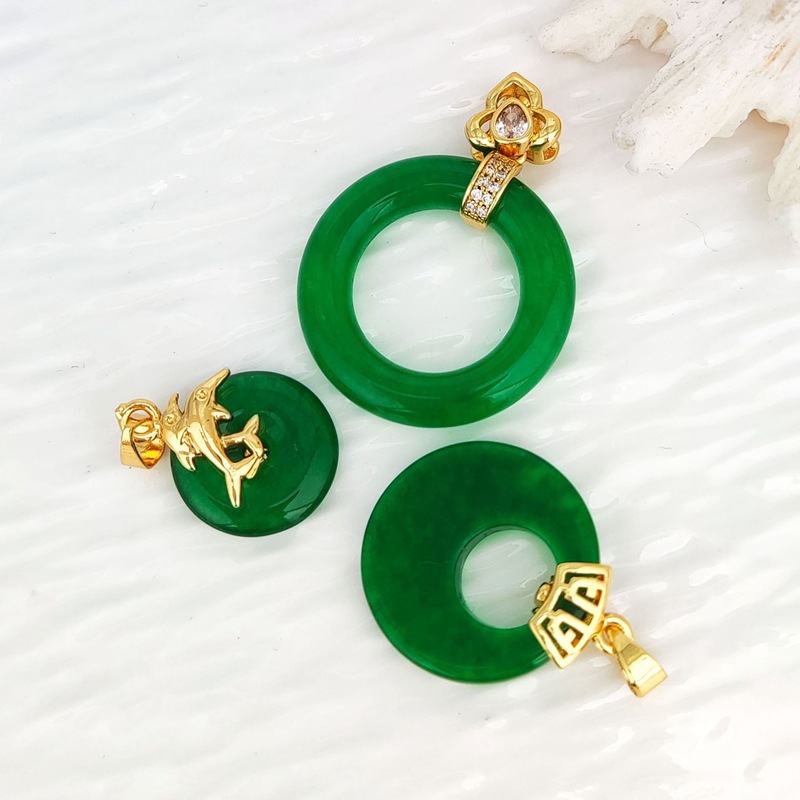 ヤサ新中国式玉石平安ボタン中古ヴィンテージ宮廷風毛衣チェーン緑玉髄円形ペンダント