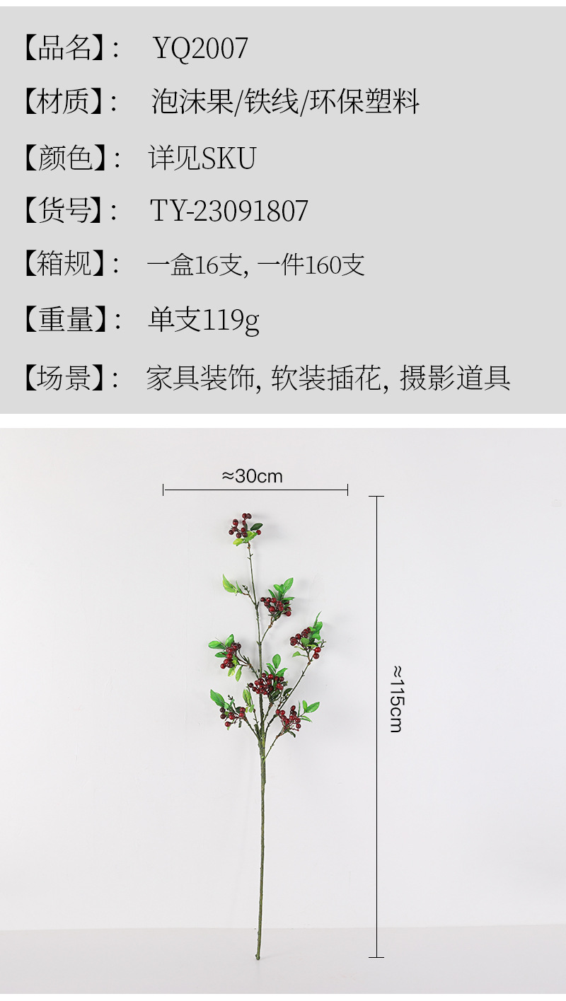 緑植ベリー紅果子発財果クリスマス冬青果子家庭装飾新年飾り偽花枝