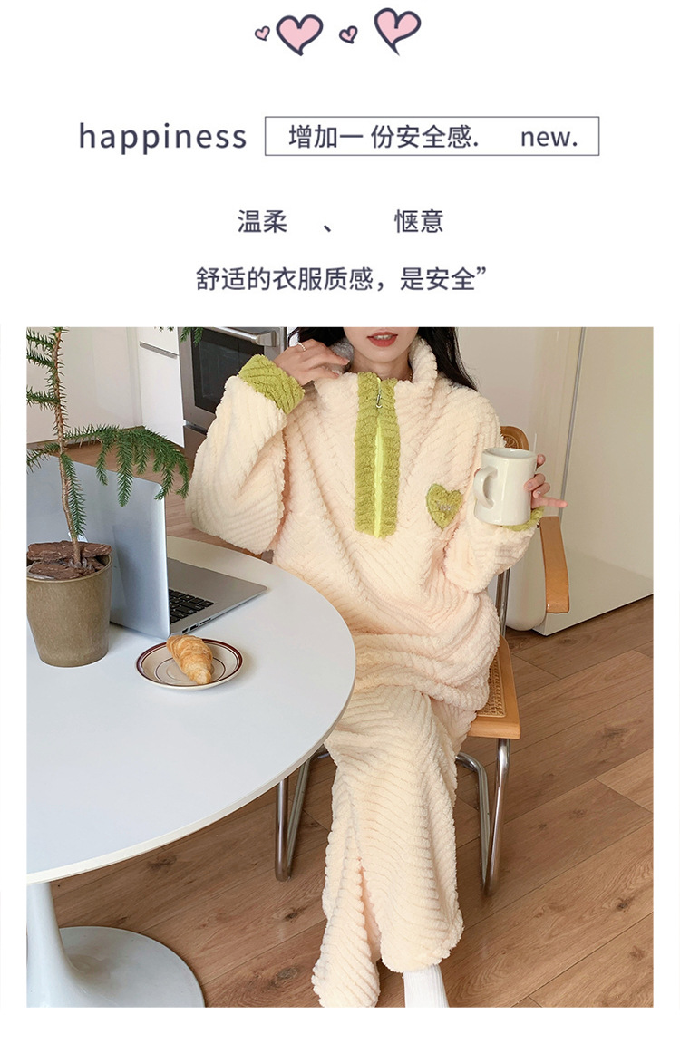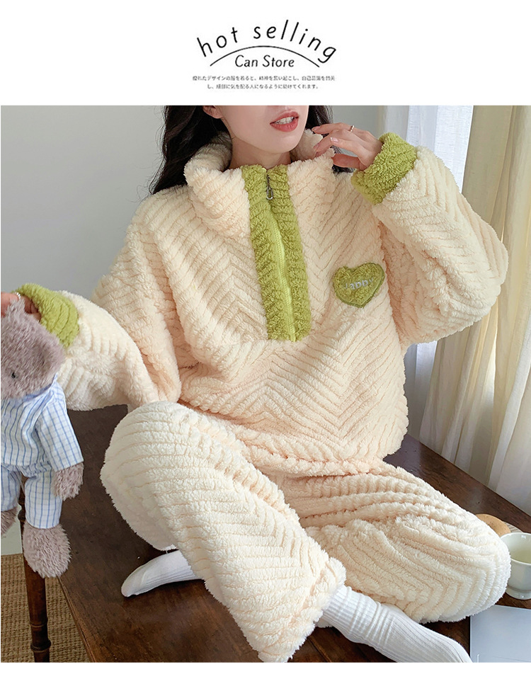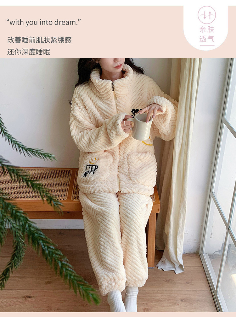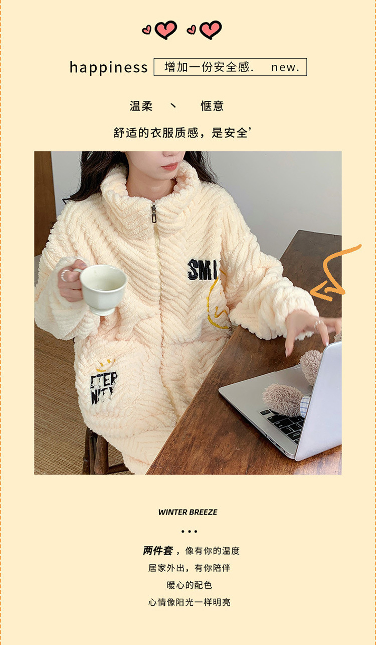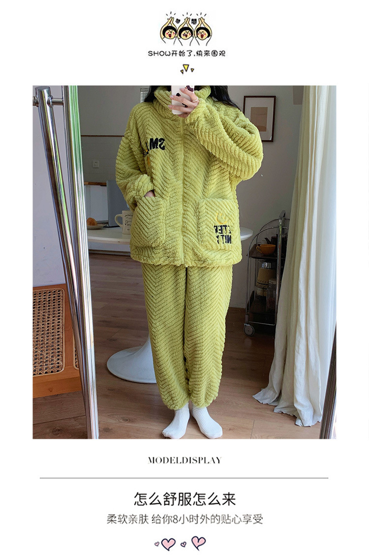 サンゴのパジャマの女性秋冬の新型の厚いファスナーのカーディガンの長袖の韓国版の甘くてゆったりしている家庭服のスーツ