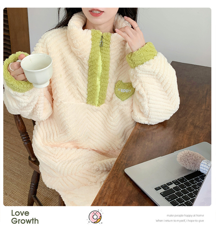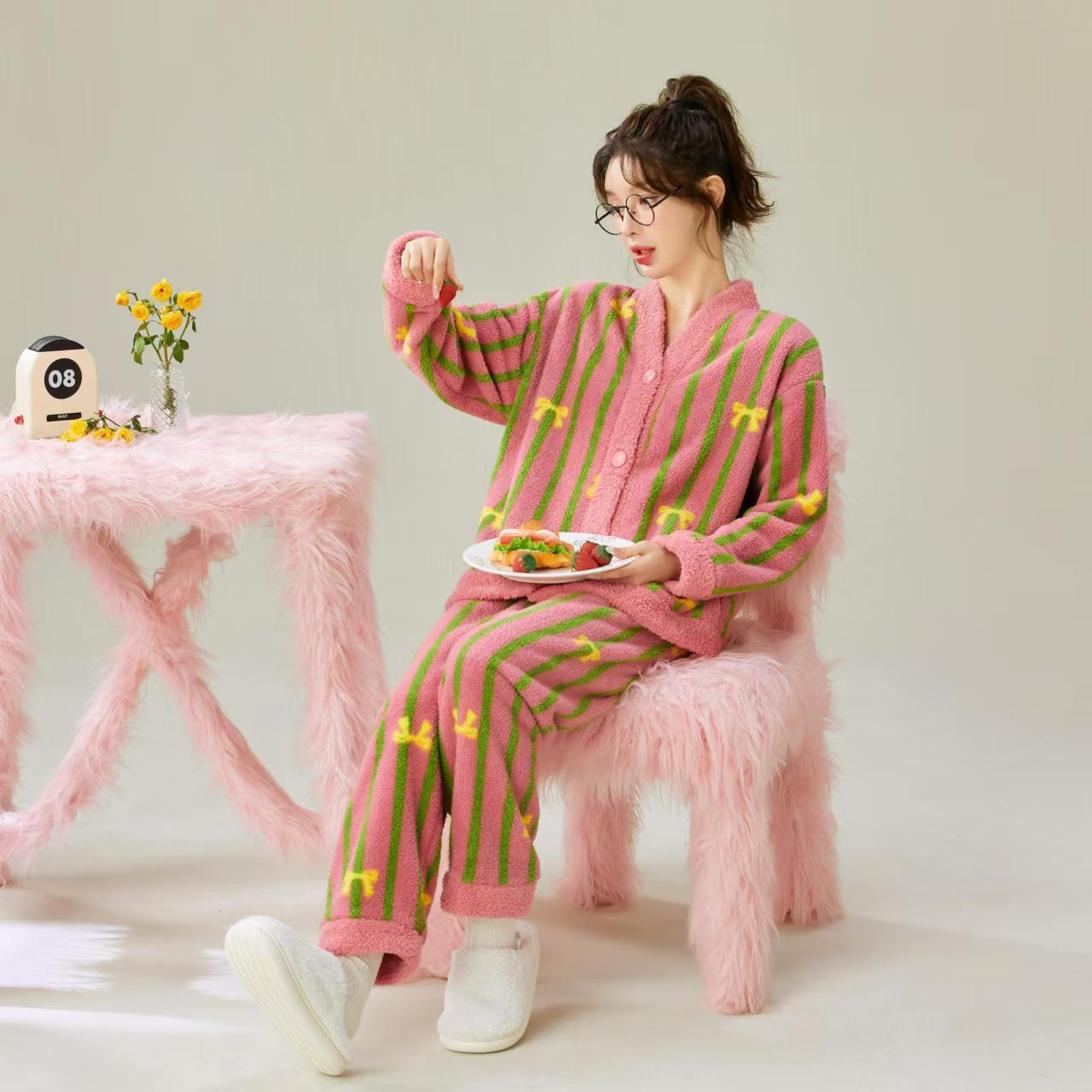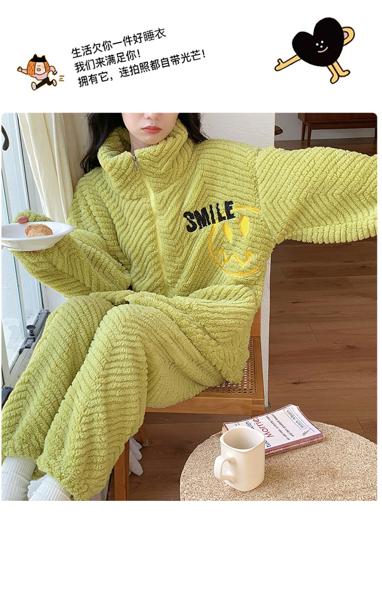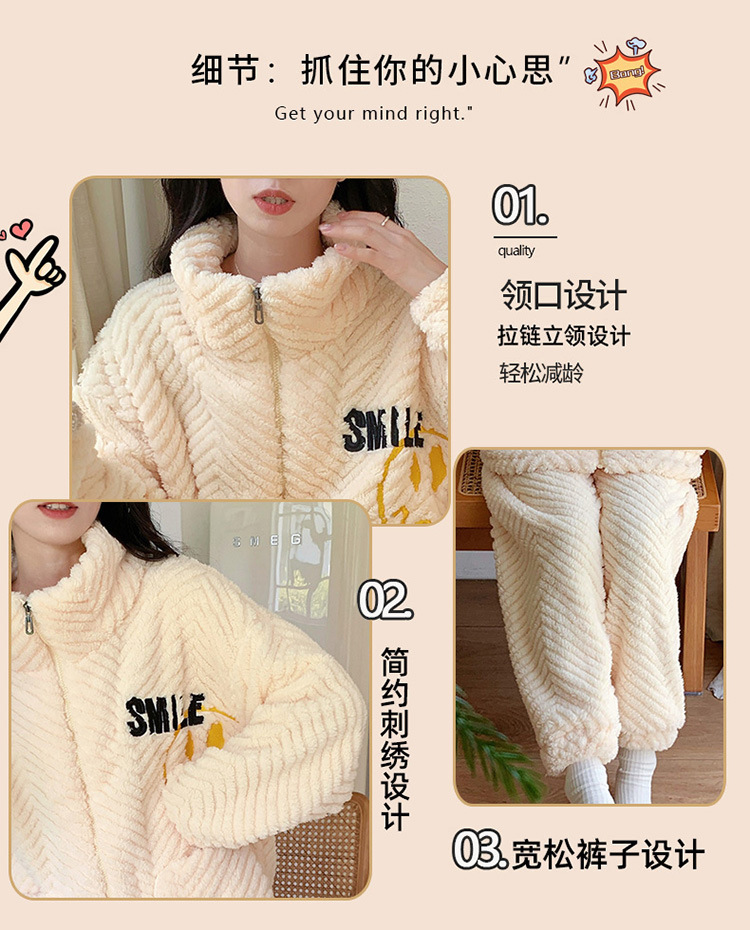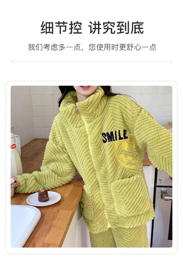 サンゴのパジャマの女性秋冬の新型の厚いファスナーのカーディガンの長袖の韓国版の甘くてゆったりしている家庭服のスーツ