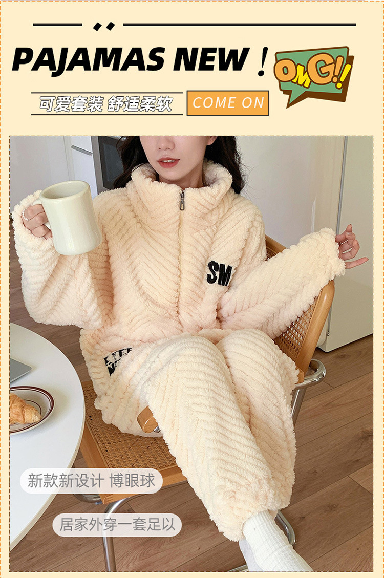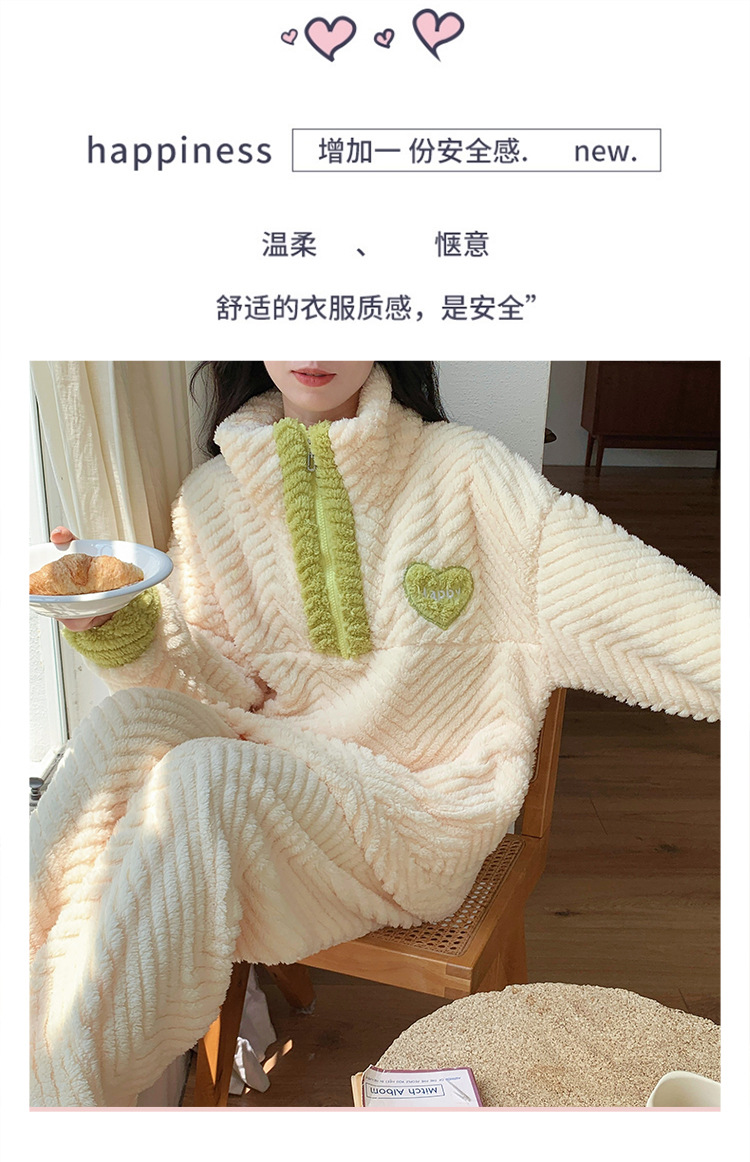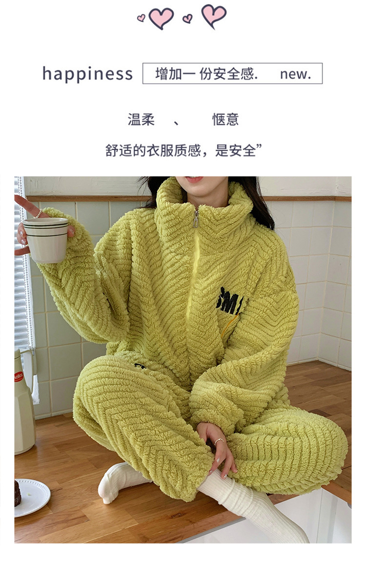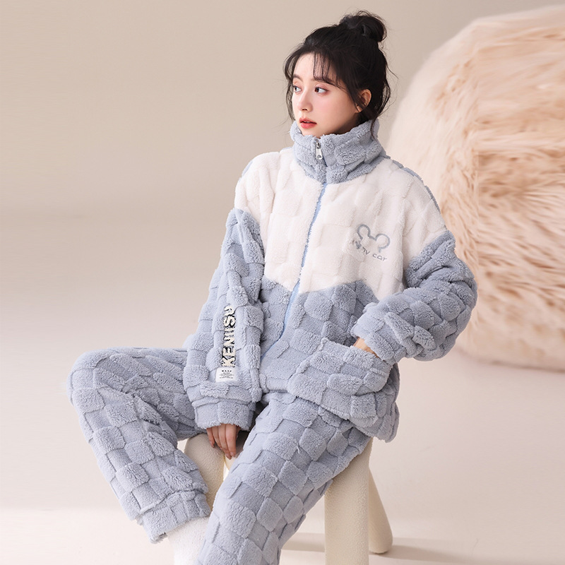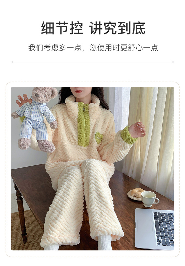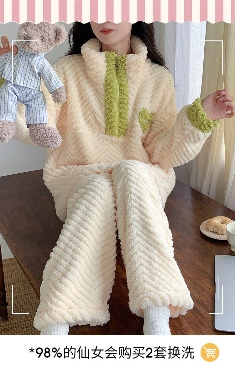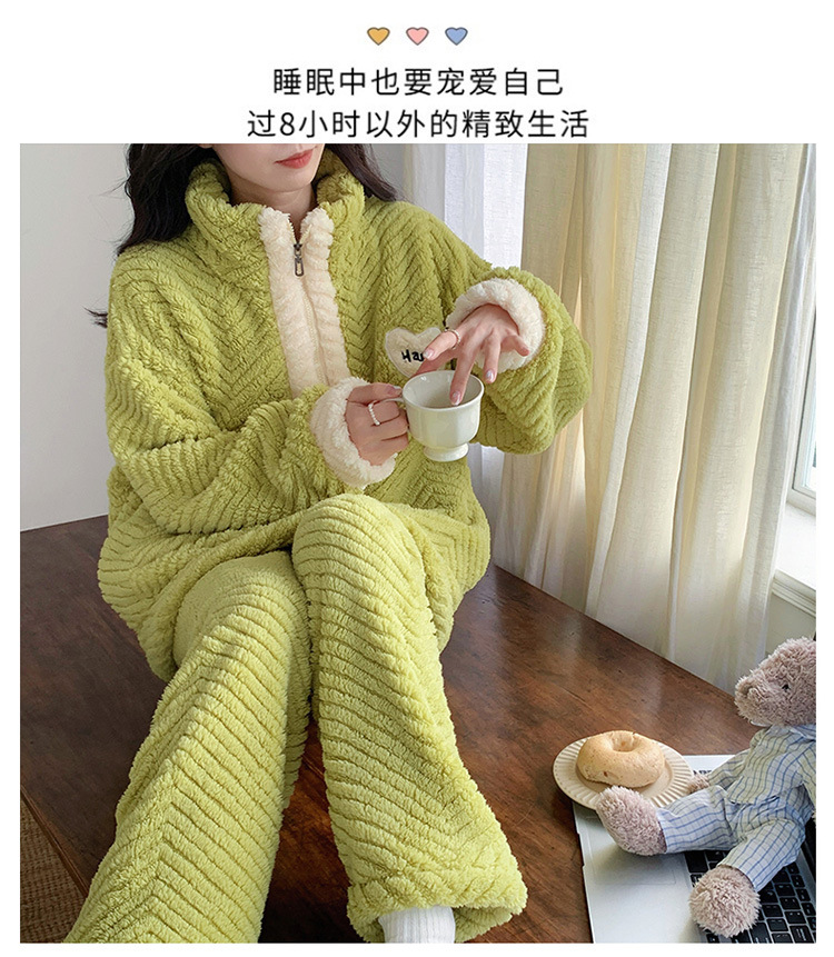 特厚情侣套装加绒加厚睡衣保暖立领拉链家居服套装珊瑚绒舒适柔软