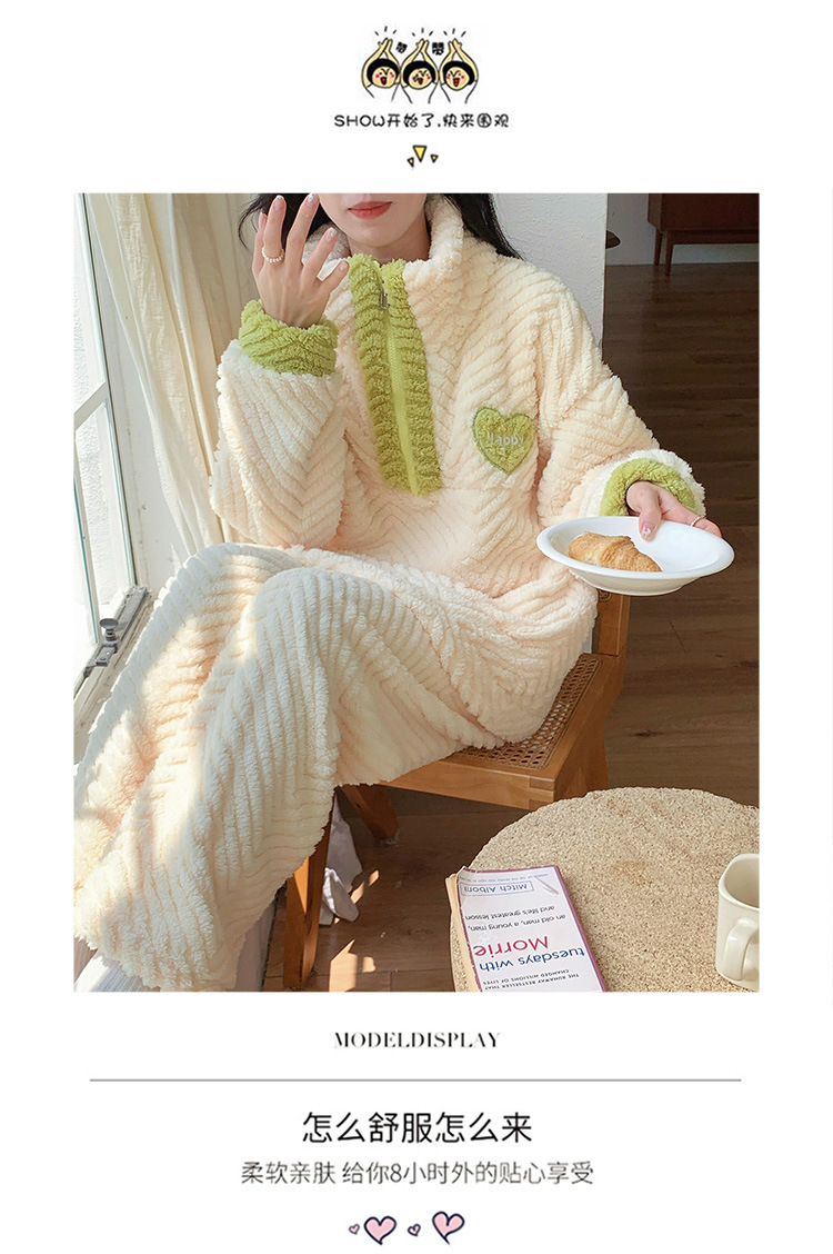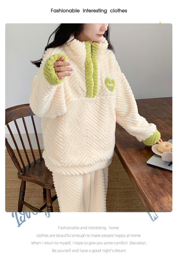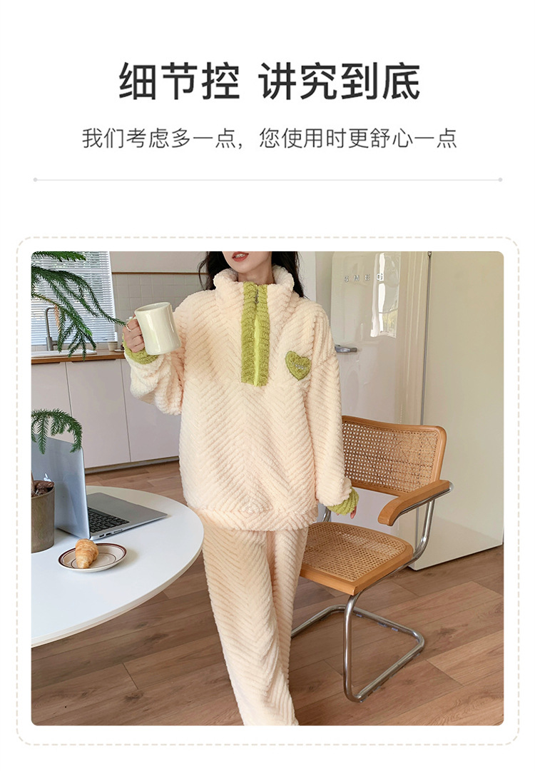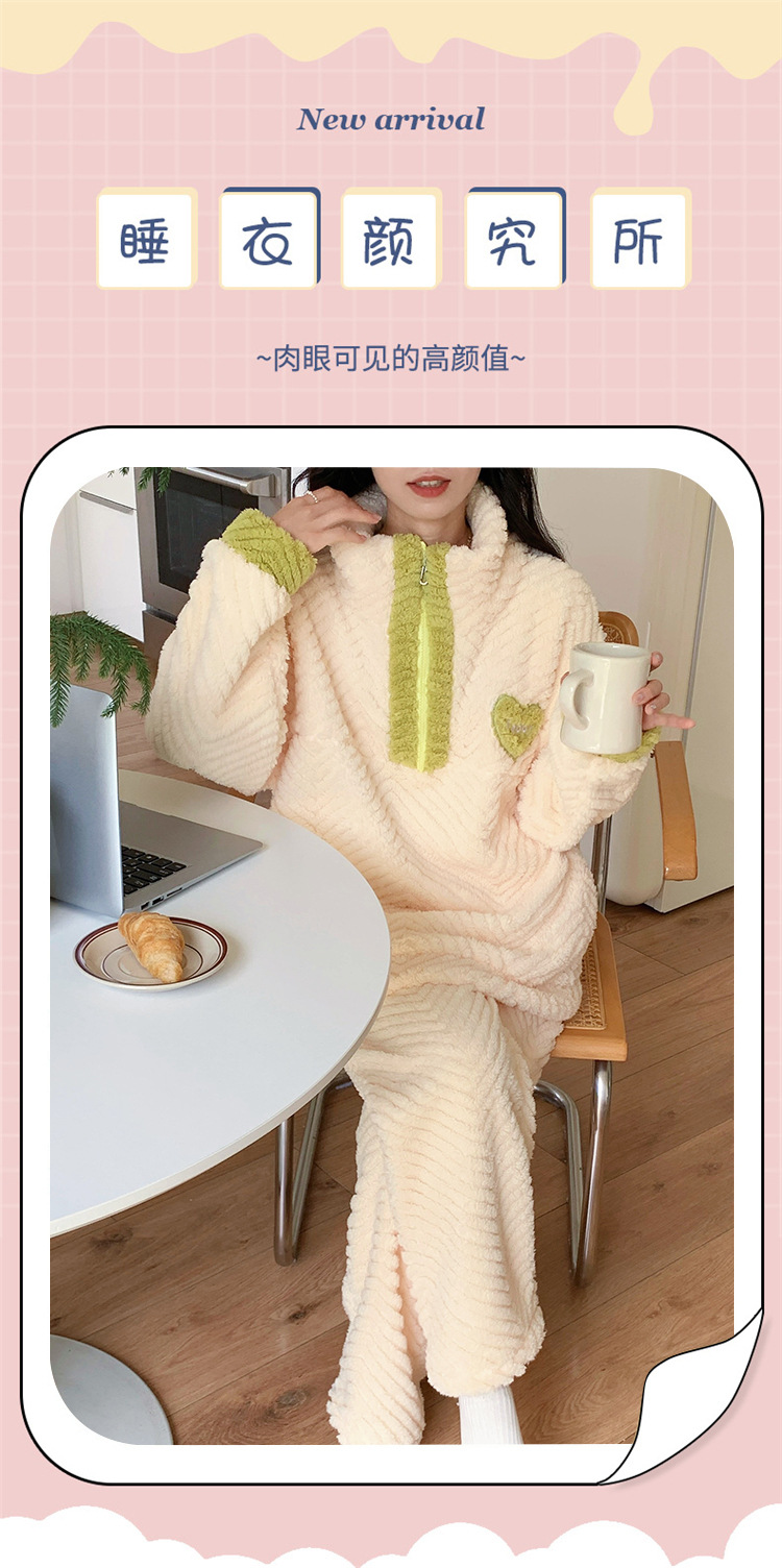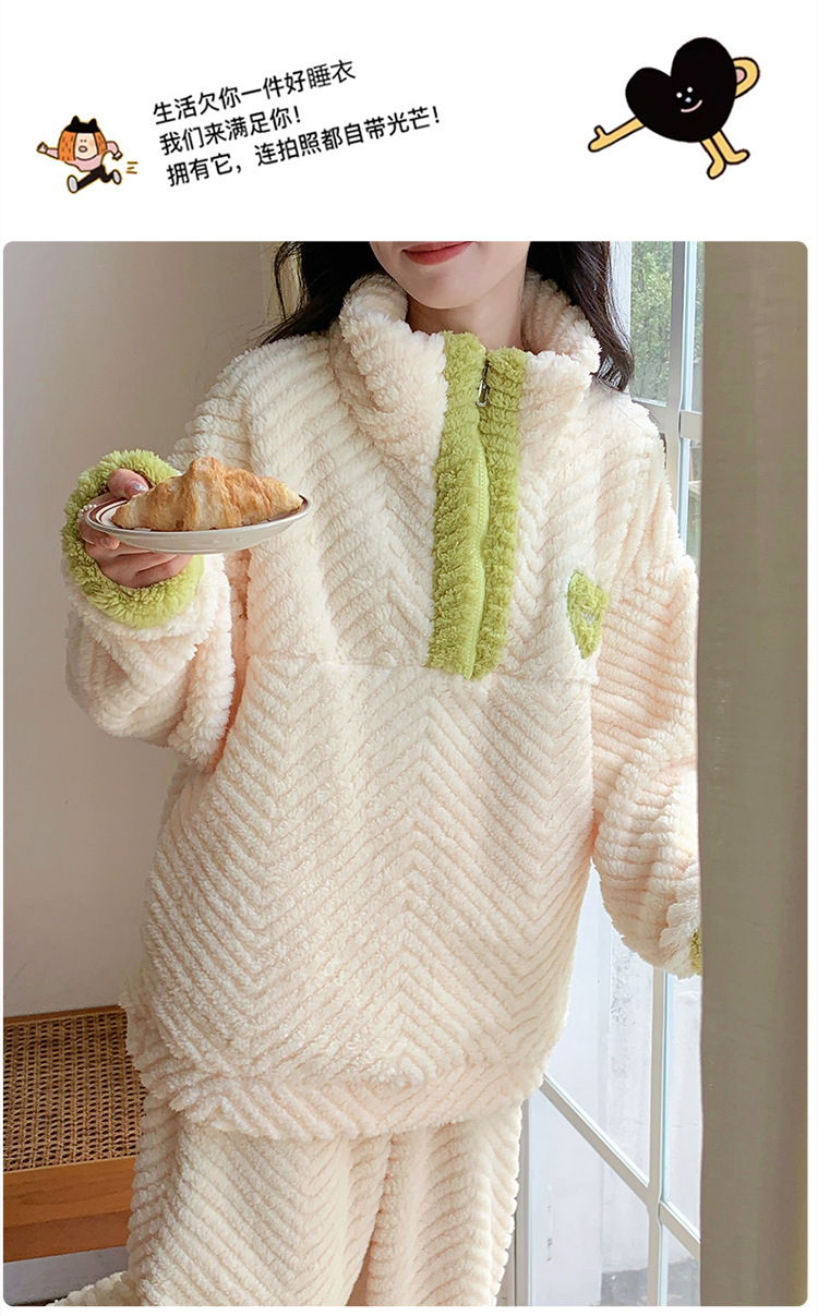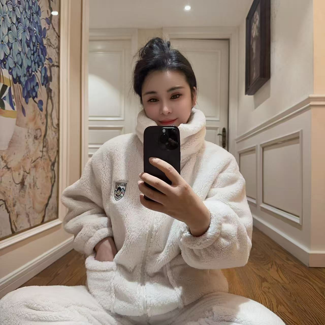 特厚情侣套装加绒加厚睡衣保暖立领拉链家居服套装珊瑚绒舒适柔软