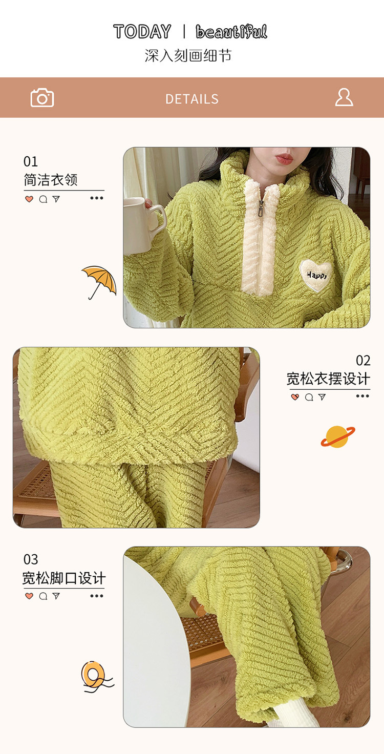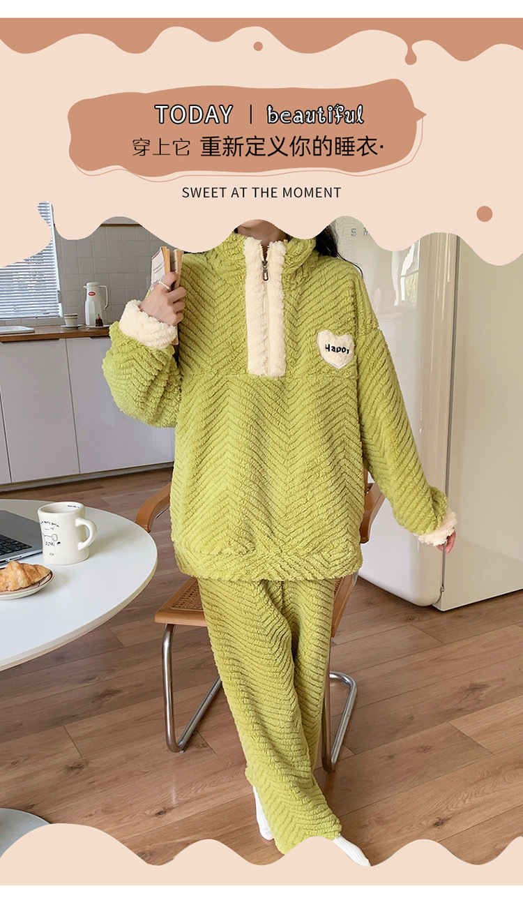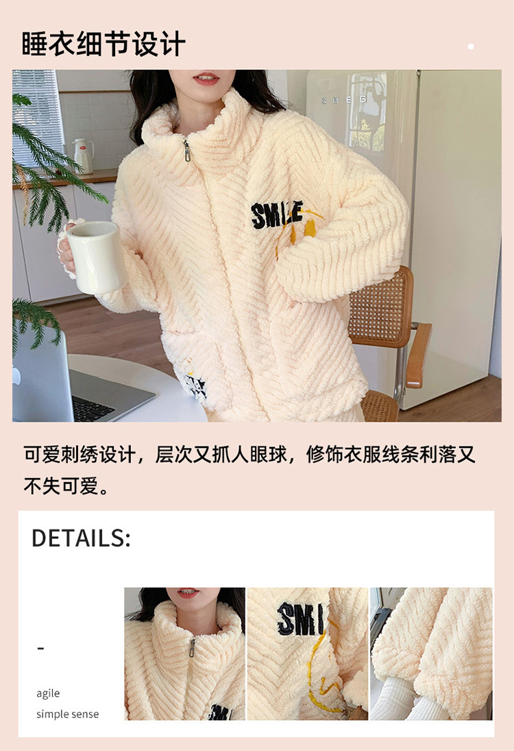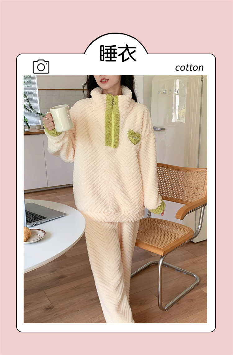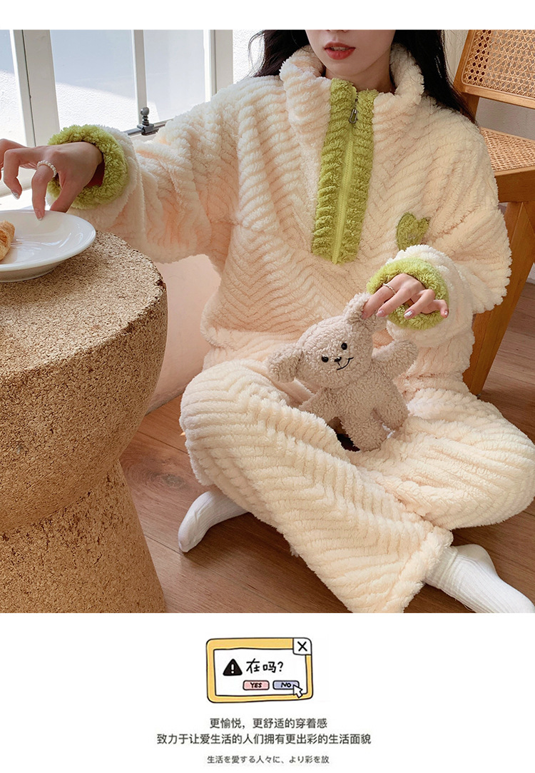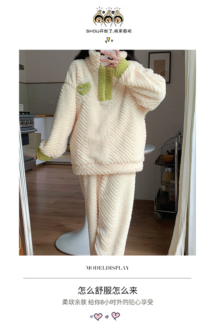 特厚情侣套装加绒加厚睡衣保暖立领拉链家居服套装珊瑚绒舒适柔软