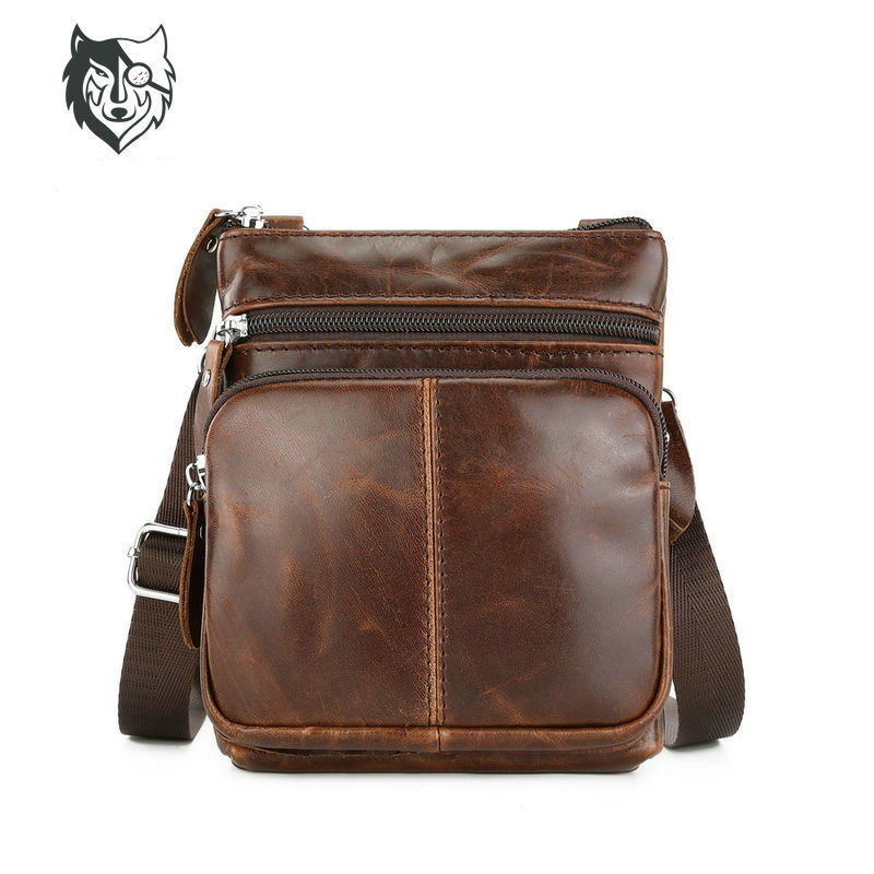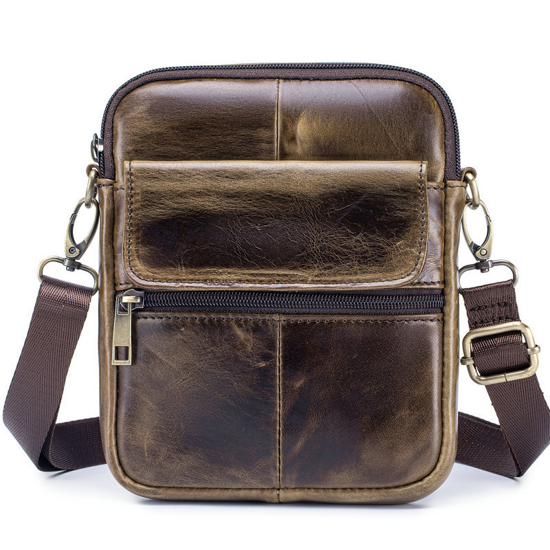 跨境真皮男士斜挎单肩包多口袋手机包商务通勤头层牛皮休闲小挎包